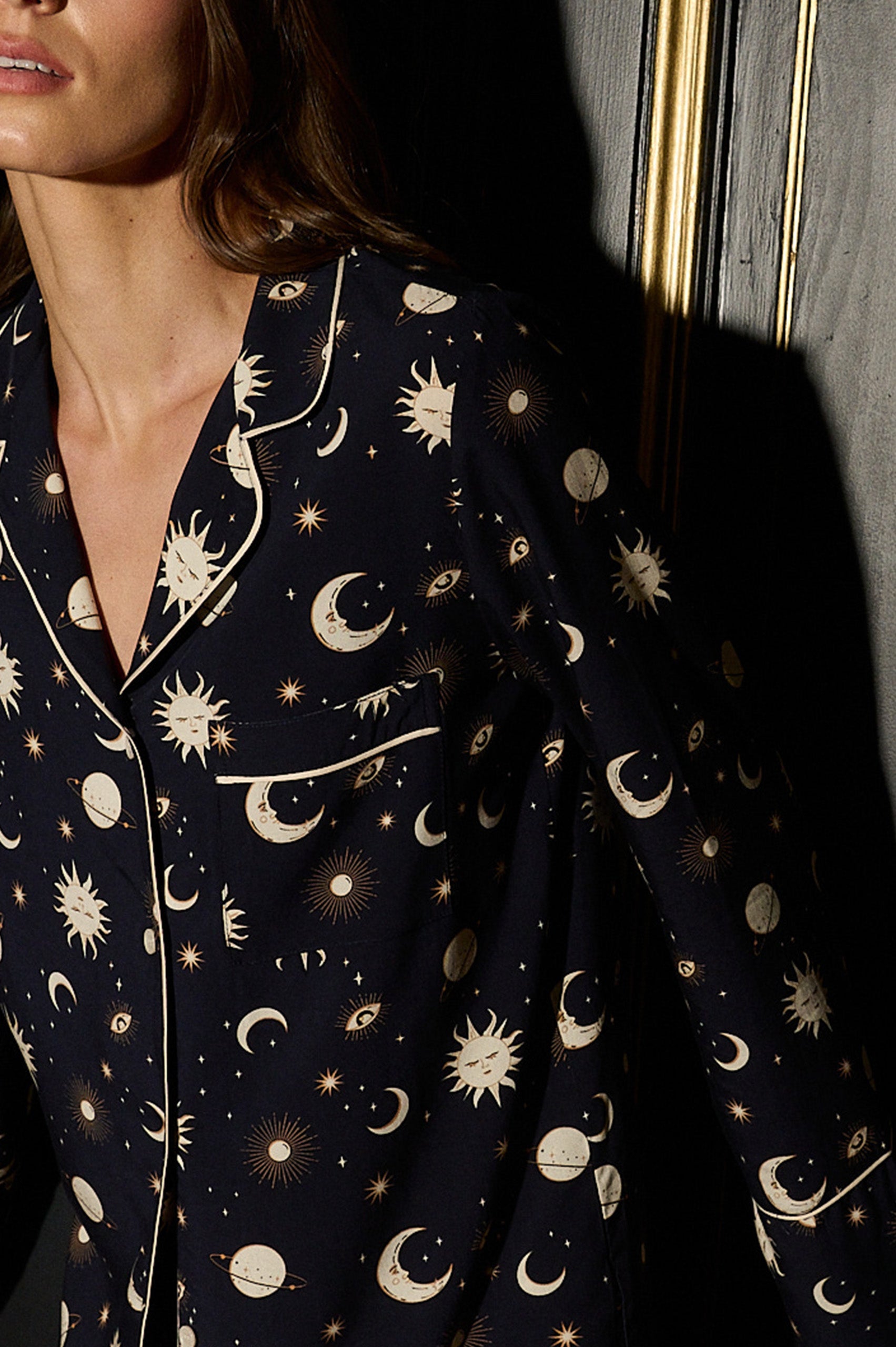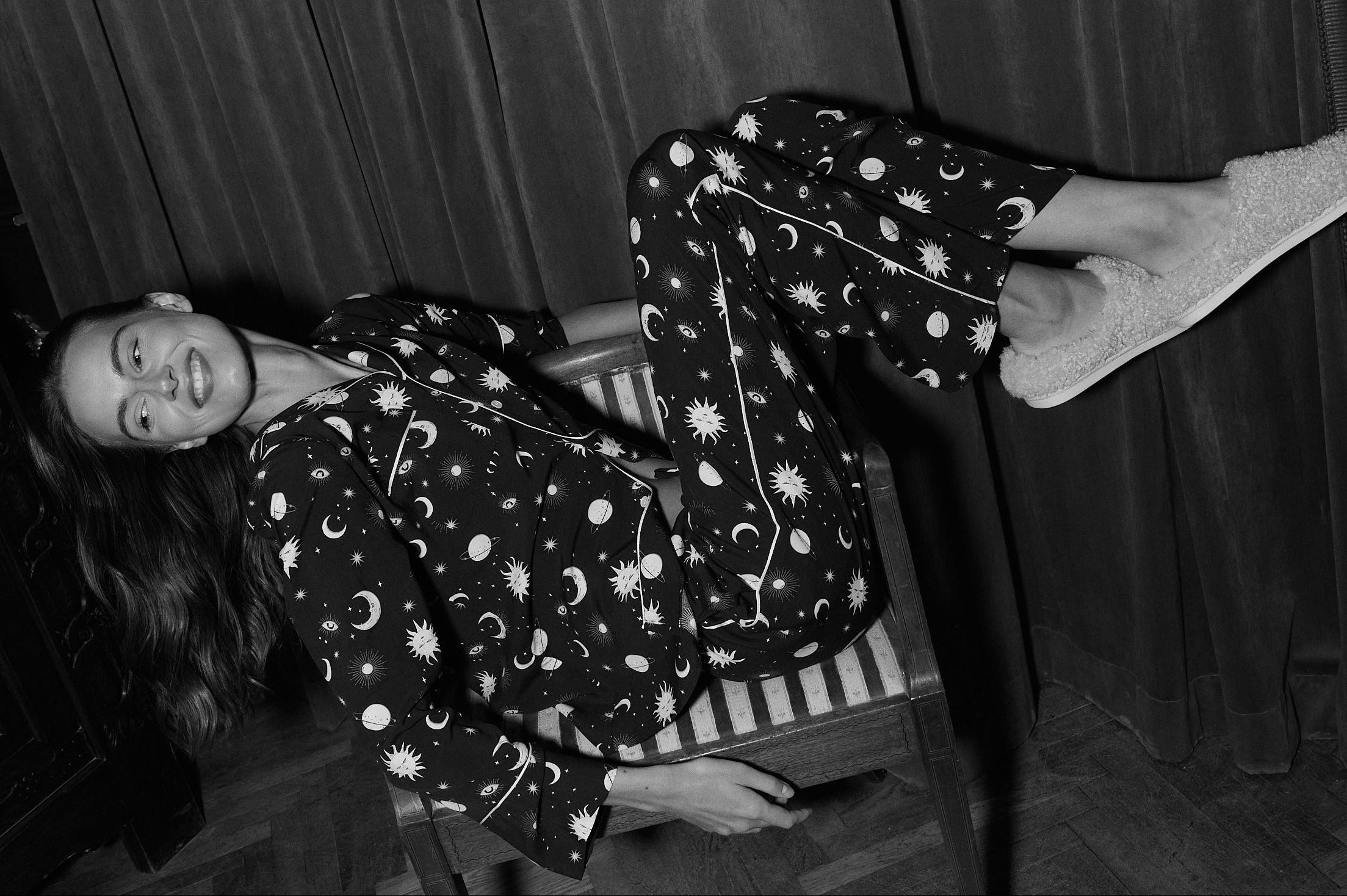 Doskonale sprawdzą się tu piżamy ze szlachetnych materiałów z delikatnym printem.