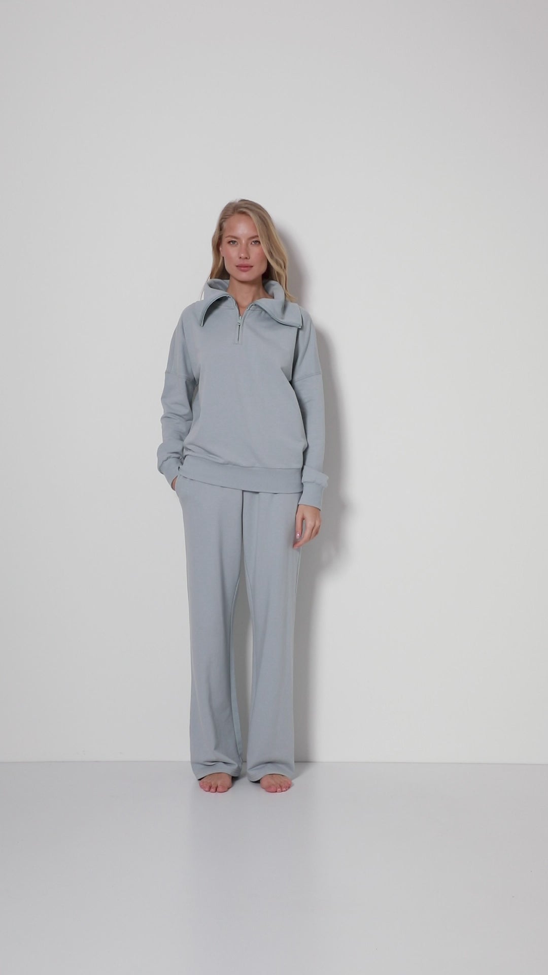 - Bluza o luźnym kroju, z wysokim kołnierzem i półzamkiem.