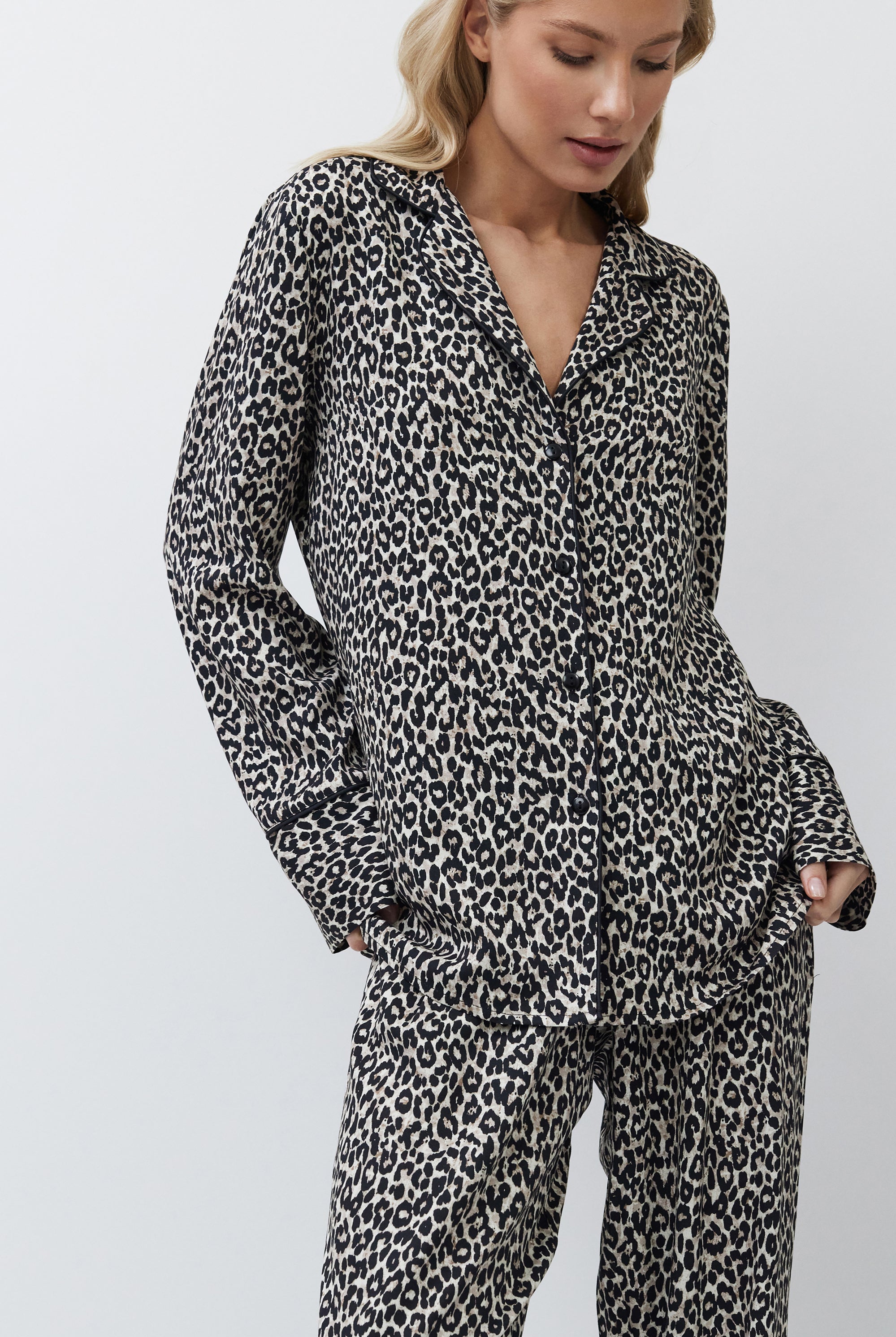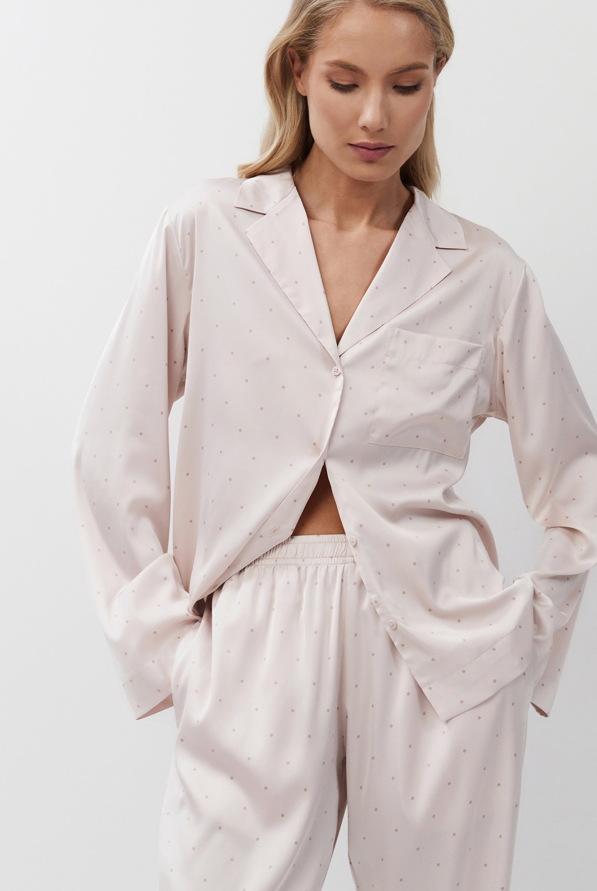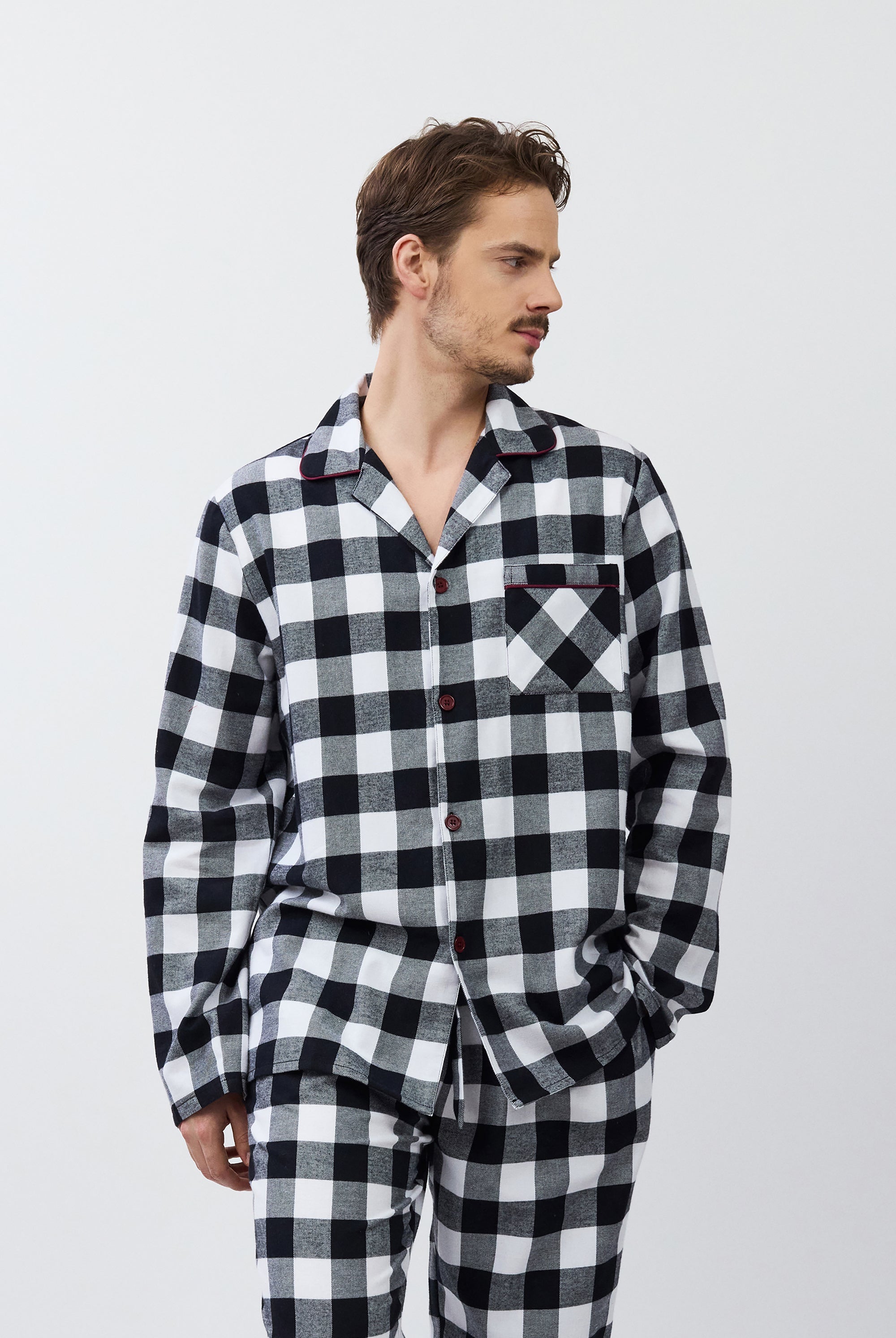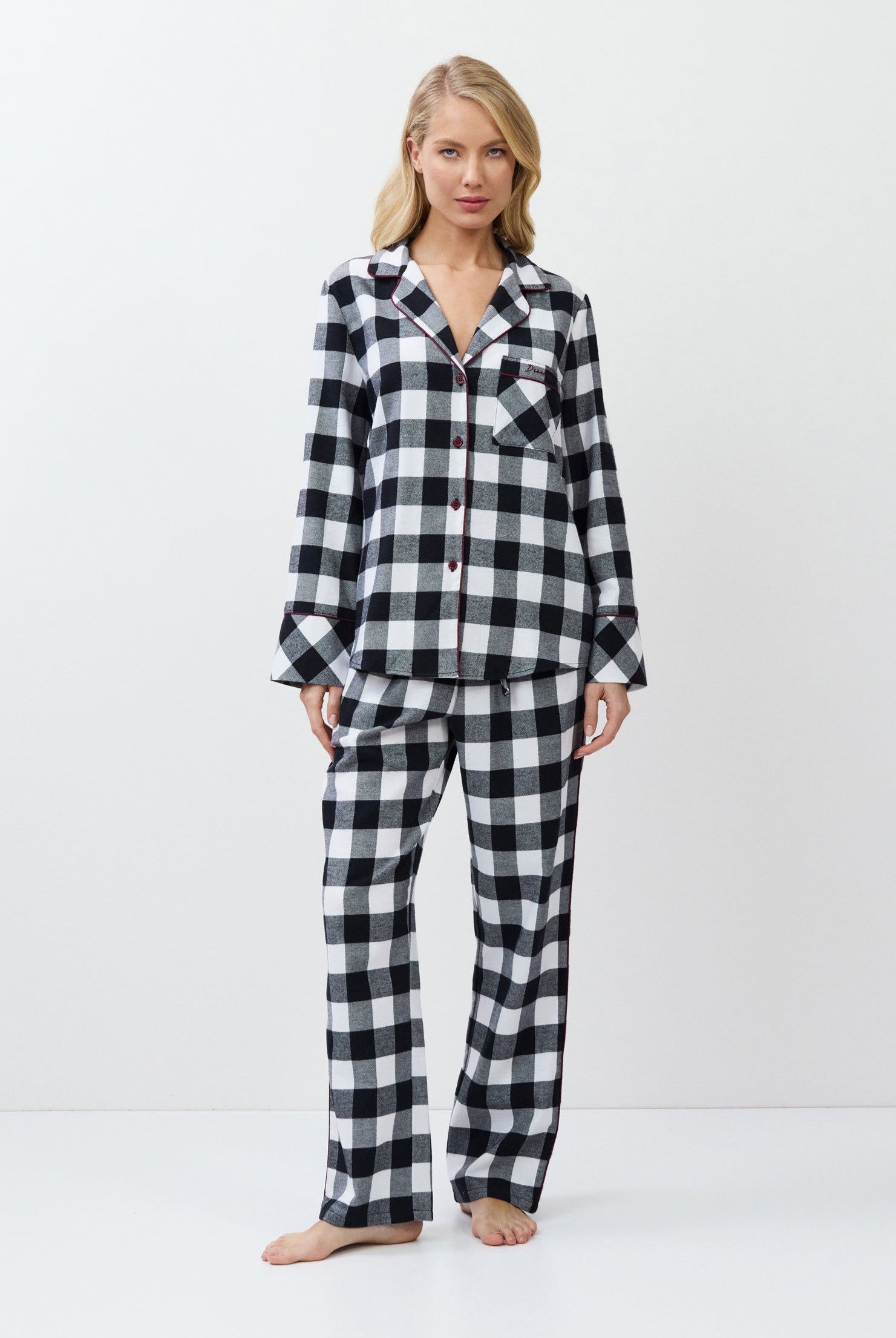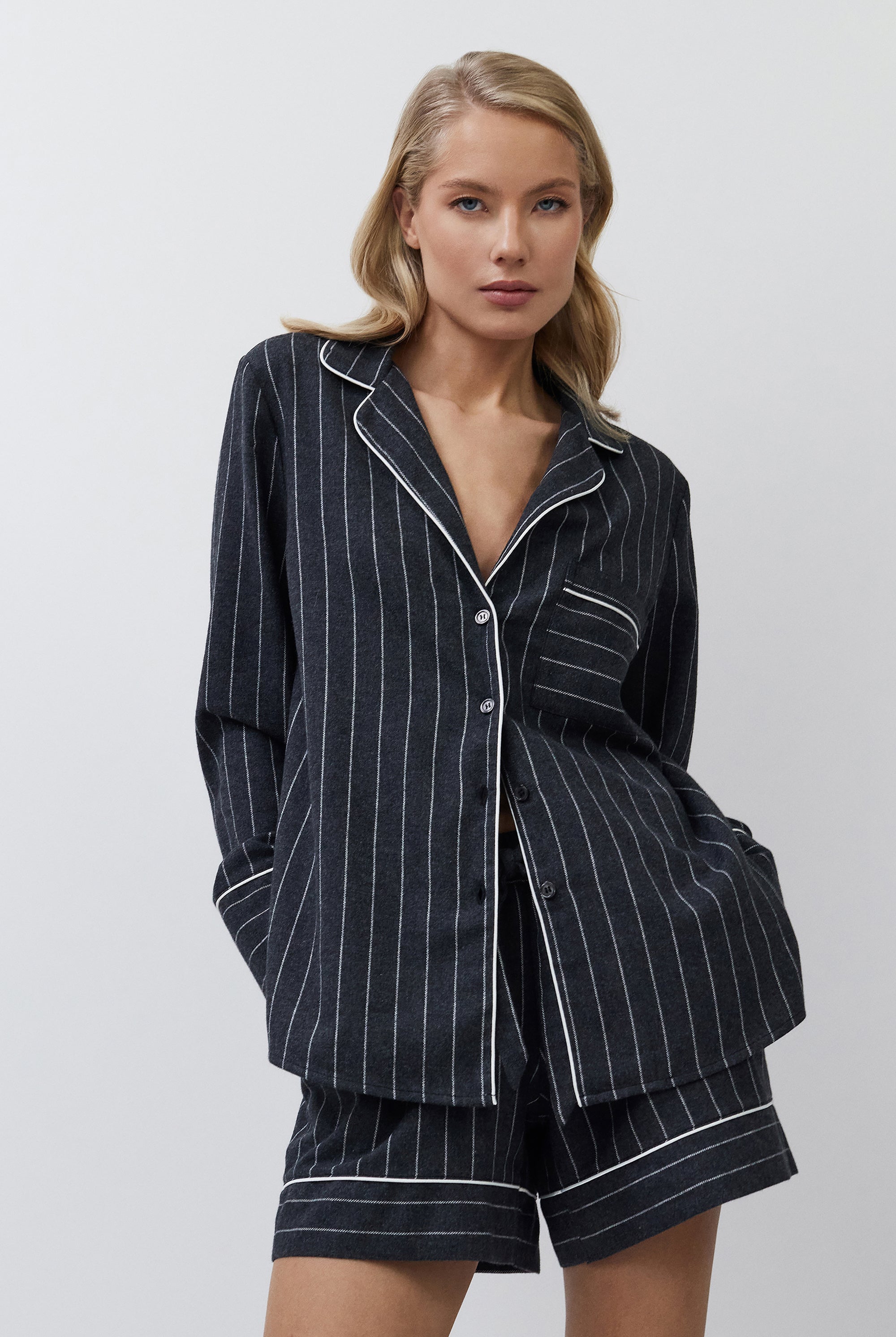 Poznaj odważne kontrasty, ponadczasowe sylwetki i nowoczesne detale w piżamach, szlafrokach, koszulach nocnych, kompletach domowych, kapciach i skarpetach. Łącząc komfort z wyrafinowaniem, ta kolekcja na nowo definiuje odzież domową – odważną, elegancką i stworzoną do wyrażania siebie.