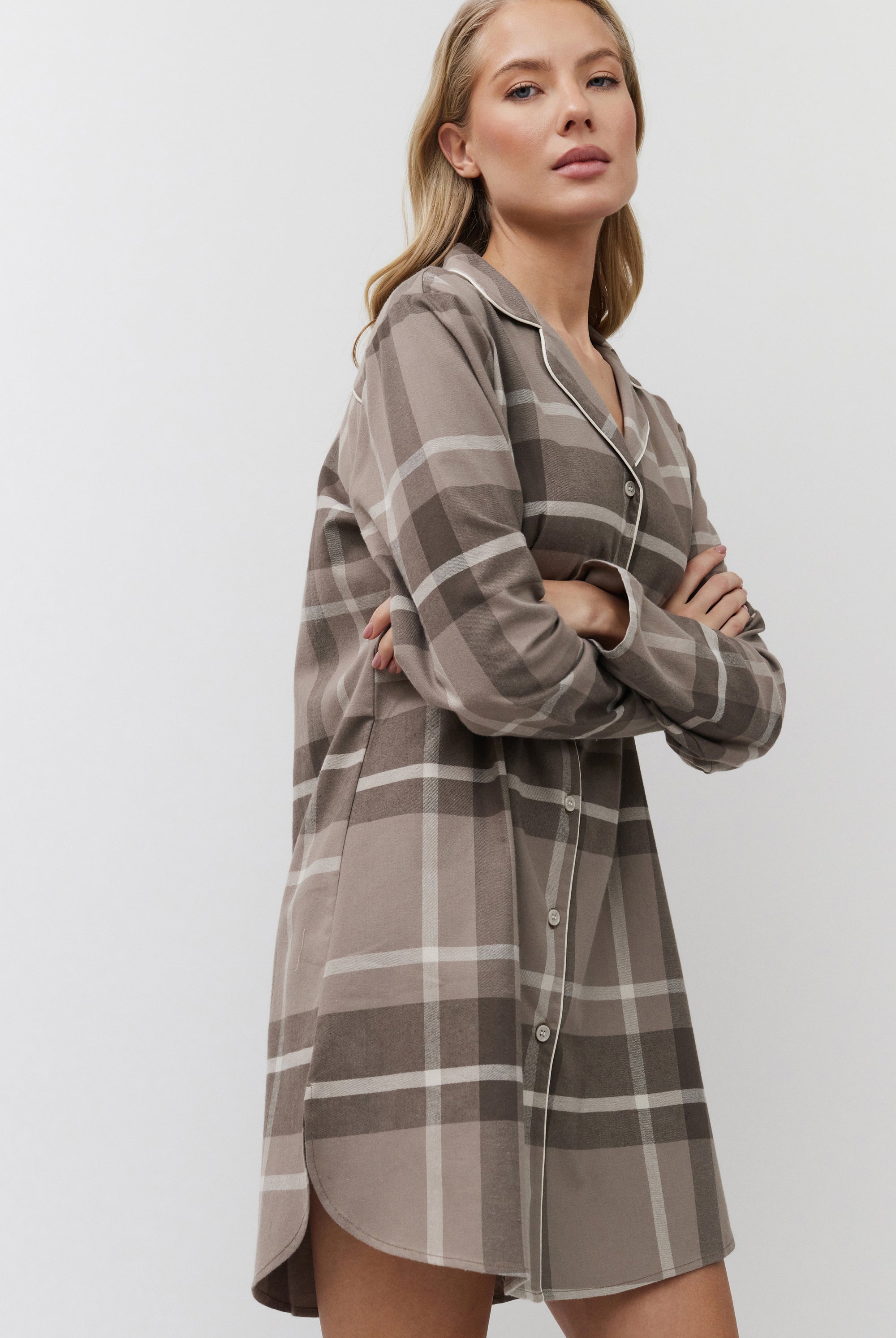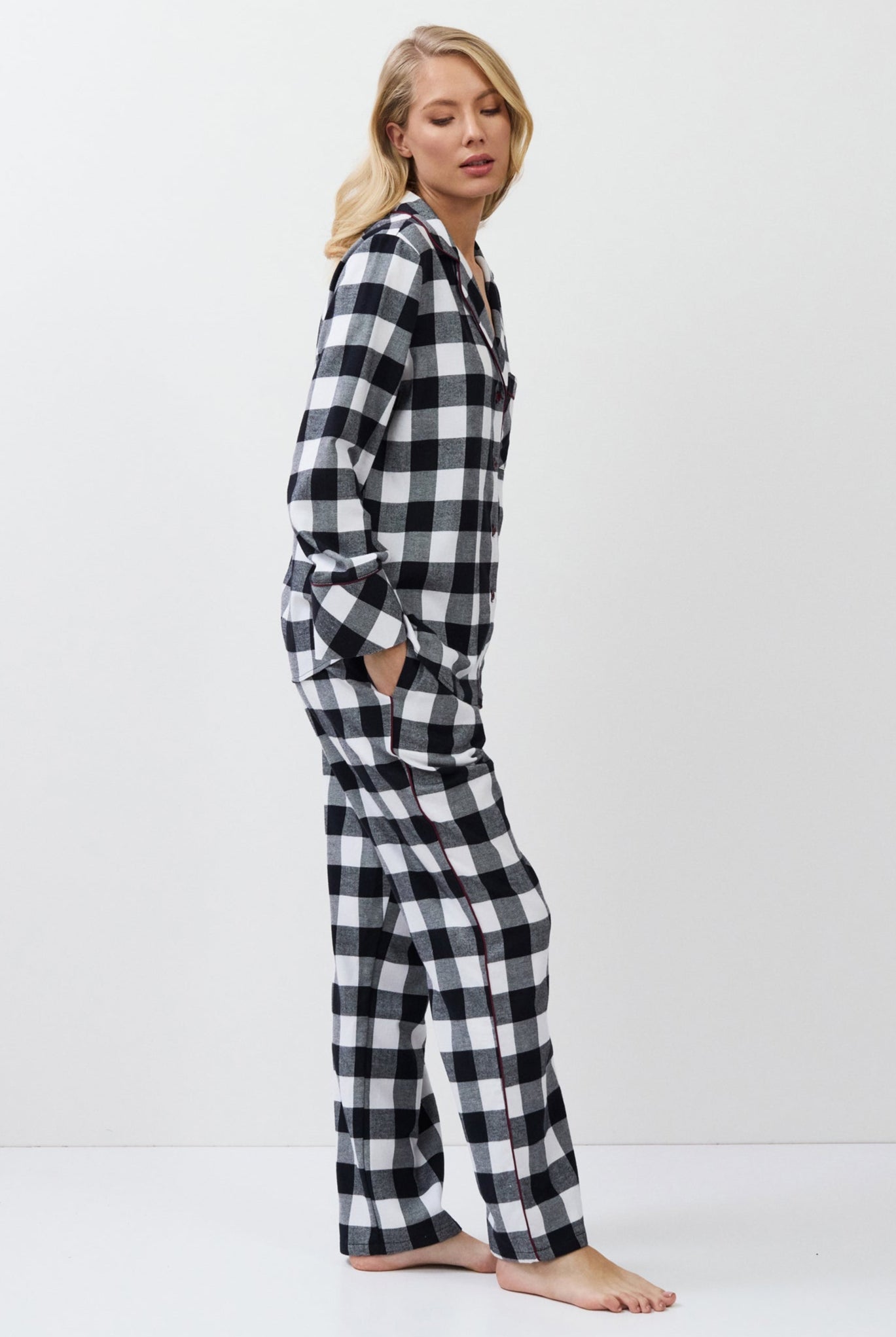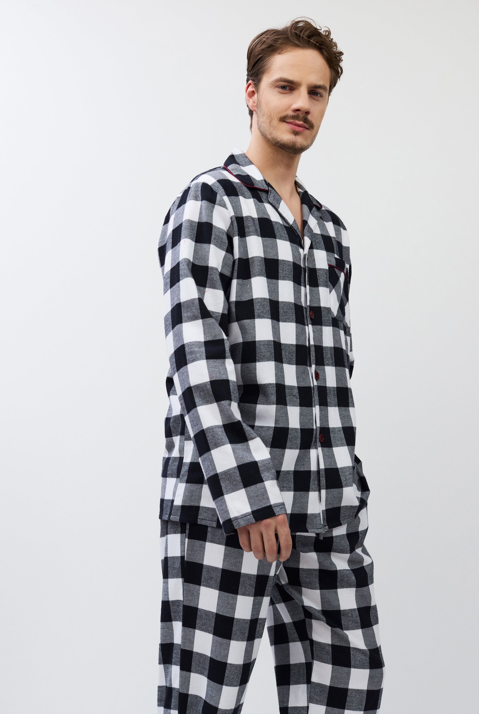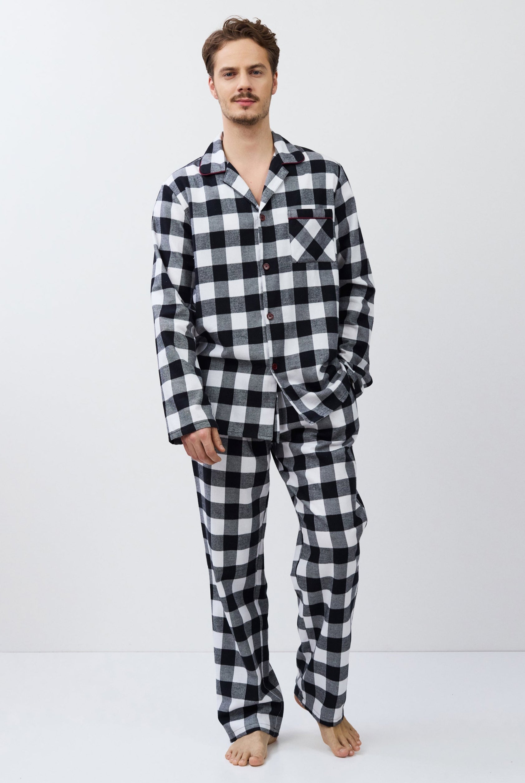 Poznaj odważne kontrasty, ponadczasowe sylwetki i nowoczesne detale w piżamach, szlafrokach, koszulach nocnych, kompletach domowych, kapciach i skarpetach. Łącząc komfort z wyrafinowaniem, ta kolekcja na nowo definiuje odzież domową – odważną, elegancką i stworzoną do wyrażania siebie.
