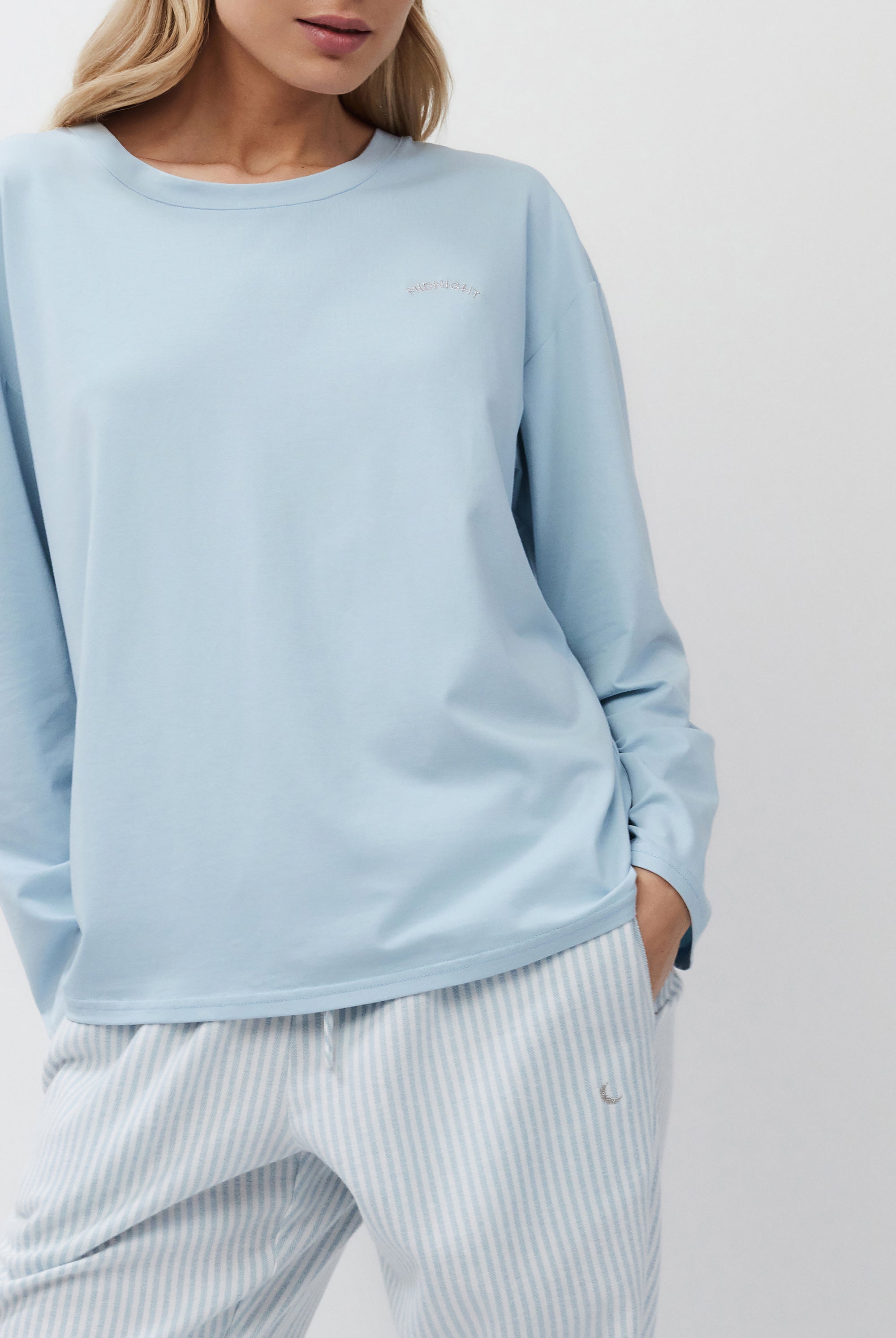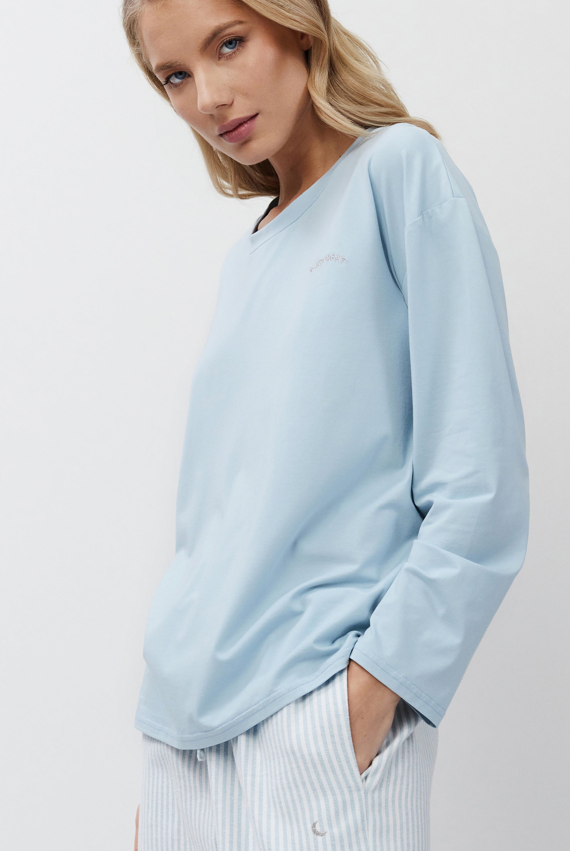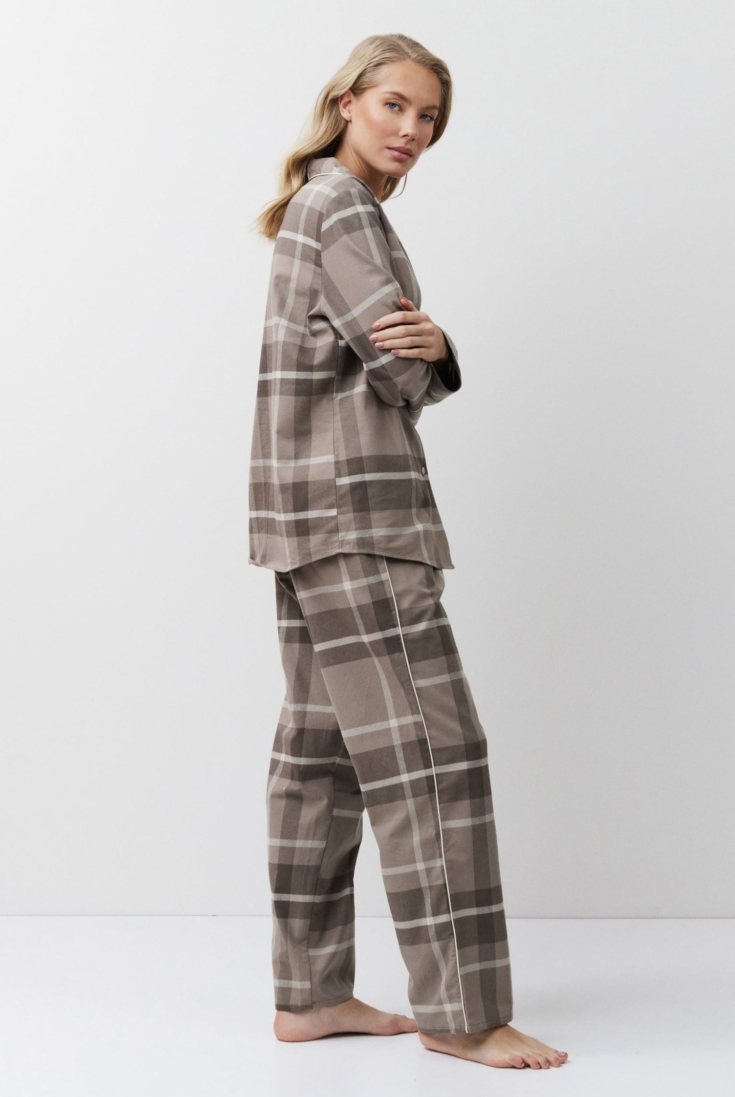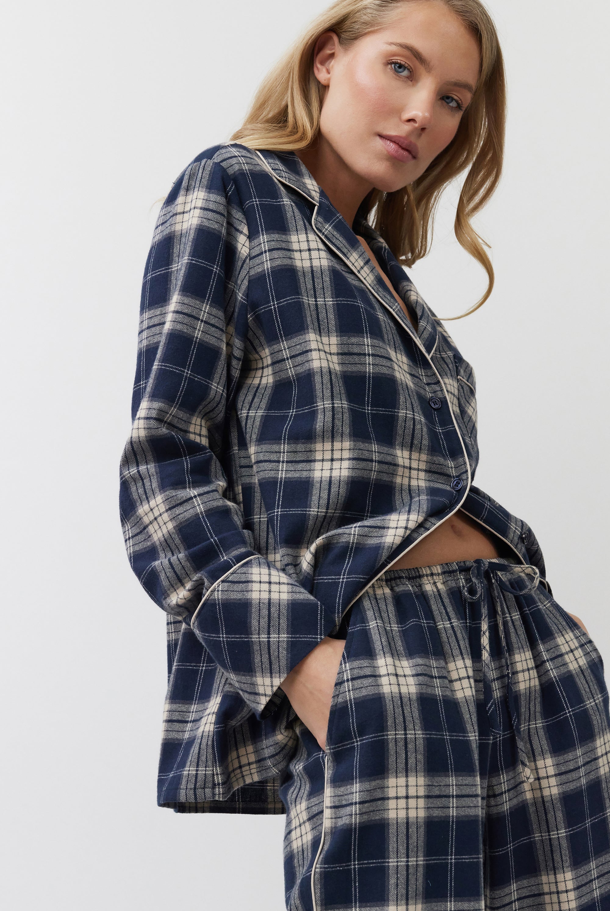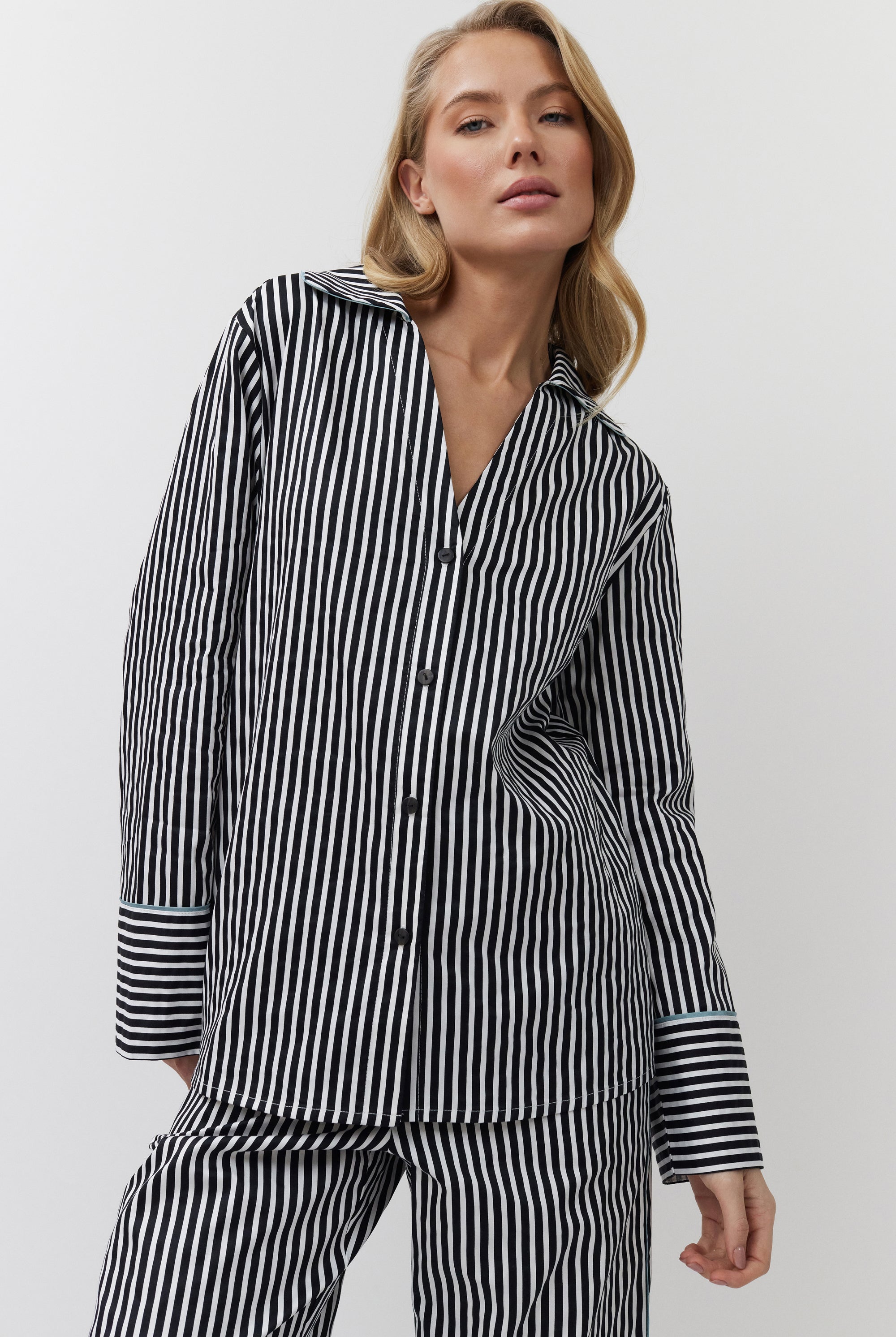 Poznaj odważne kontrasty, ponadczasowe sylwetki i nowoczesne detale w piżamach, szlafrokach, koszulach nocnych, kompletach domowych, kapciach i skarpetach. Łącząc komfort z wyrafinowaniem, ta kolekcja na nowo definiuje odzież domową – odważną, elegancką i stworzoną do wyrażania siebie.