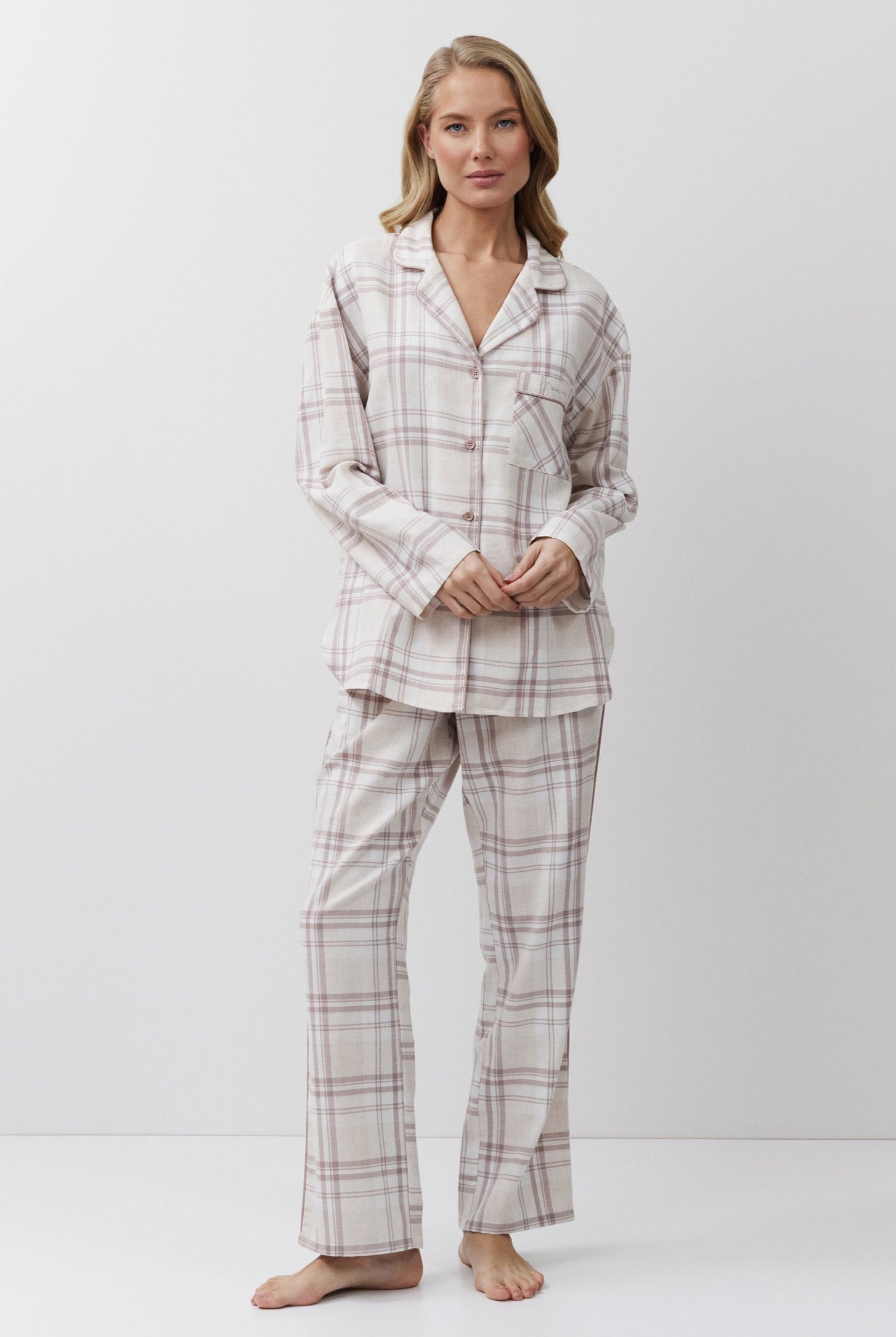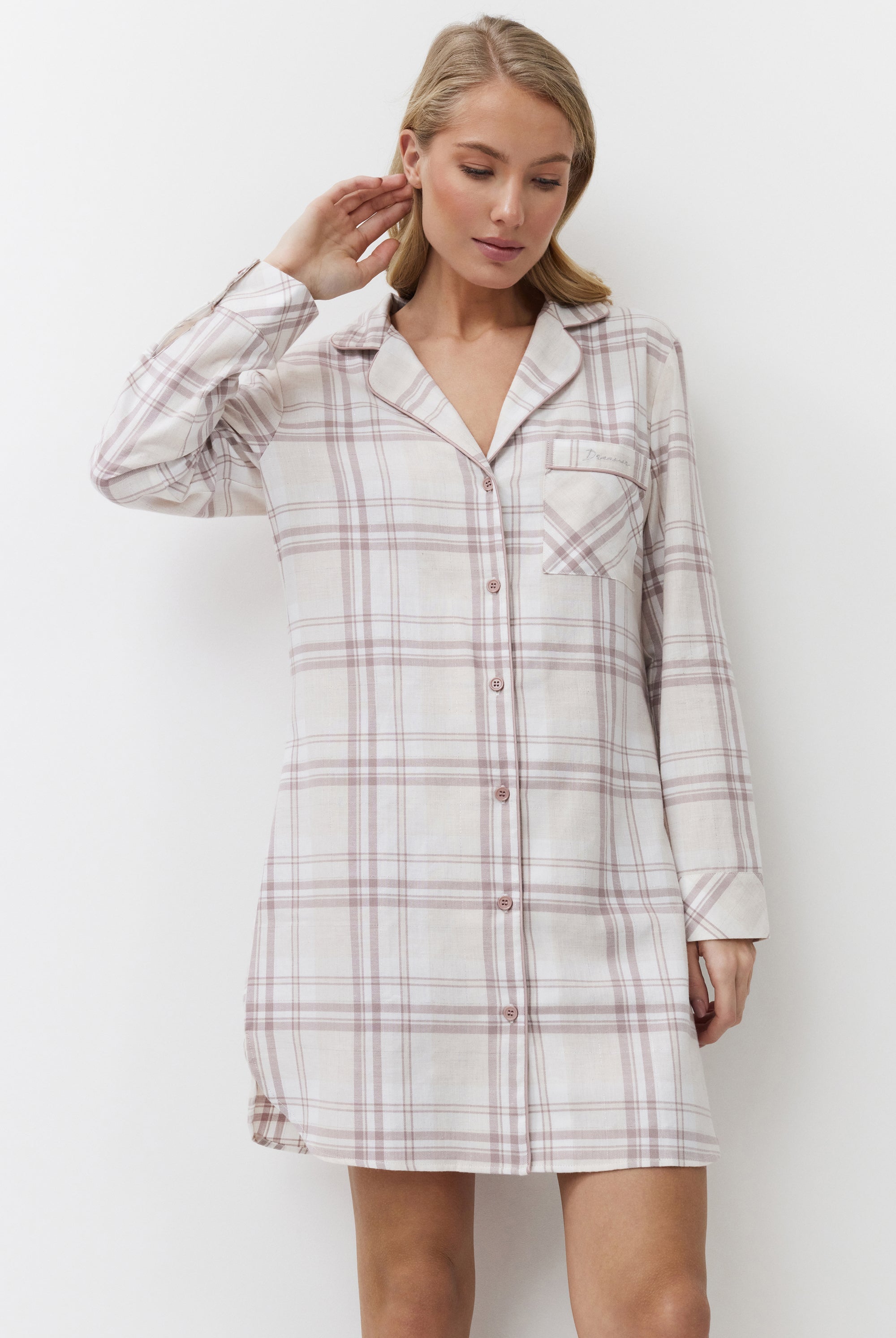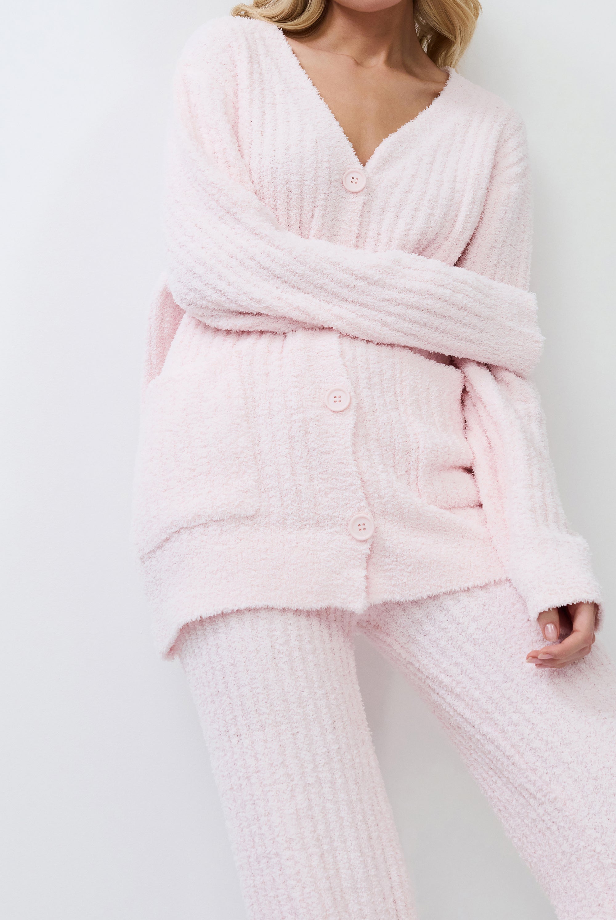 Poznaj odważne kontrasty, ponadczasowe sylwetki i nowoczesne detale w piżamach, szlafrokach, koszulach nocnych, kompletach domowych, kapciach i skarpetach. Łącząc komfort z wyrafinowaniem, ta kolekcja na nowo definiuje odzież domową – odważną, elegancką i stworzoną do wyrażania siebie.