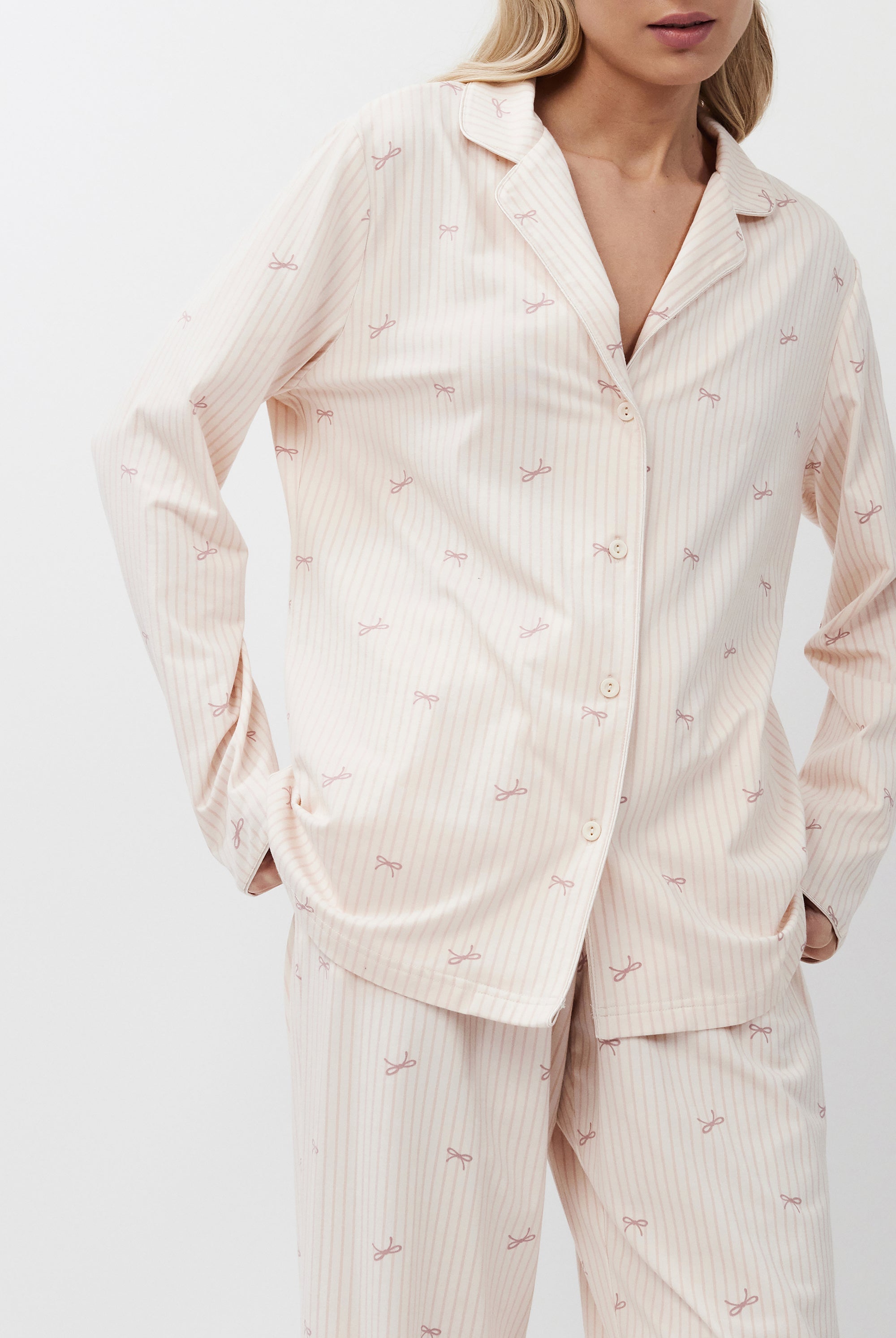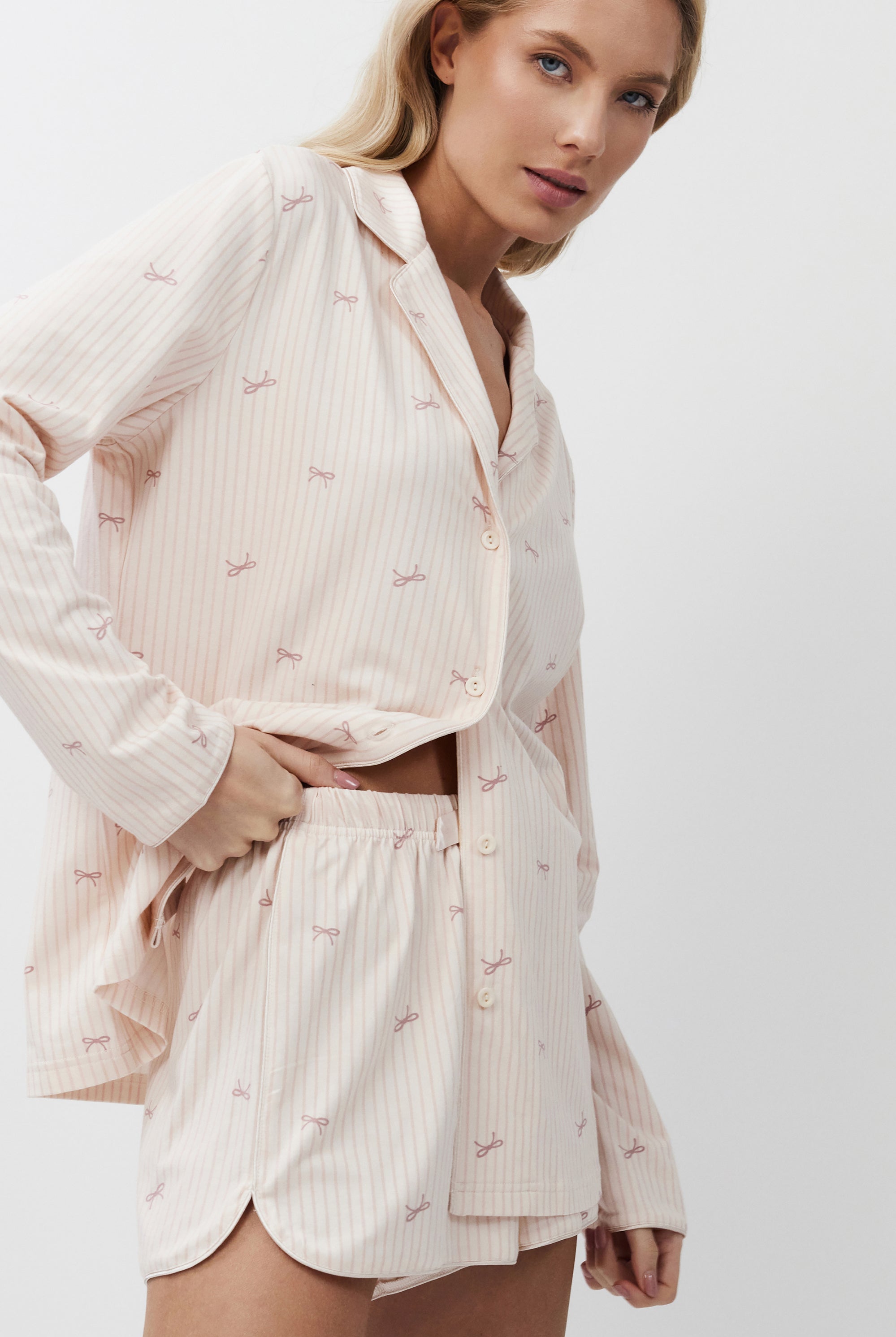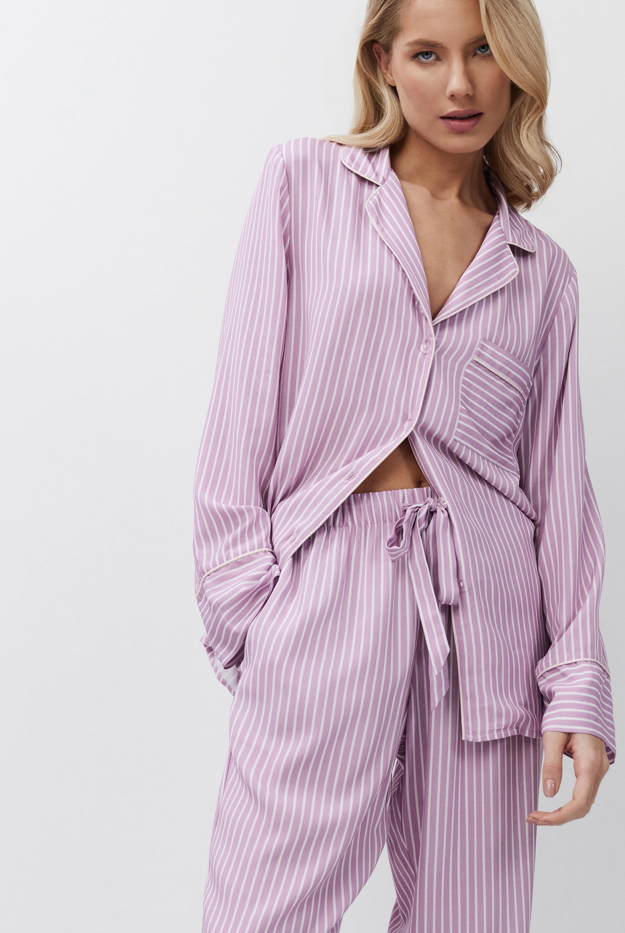 Poznaj odważne kontrasty, ponadczasowe sylwetki i nowoczesne detale w piżamach, szlafrokach, koszulach nocnych, kompletach domowych, kapciach i skarpetach. Łącząc komfort z wyrafinowaniem, ta kolekcja na nowo definiuje odzież domową – odważną, elegancką i stworzoną do wyrażania siebie.