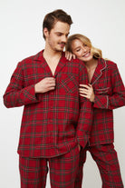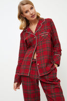 • Miękki komplet z czesanej bawełny w klasyczną czerwoną świąteczną kratkę.