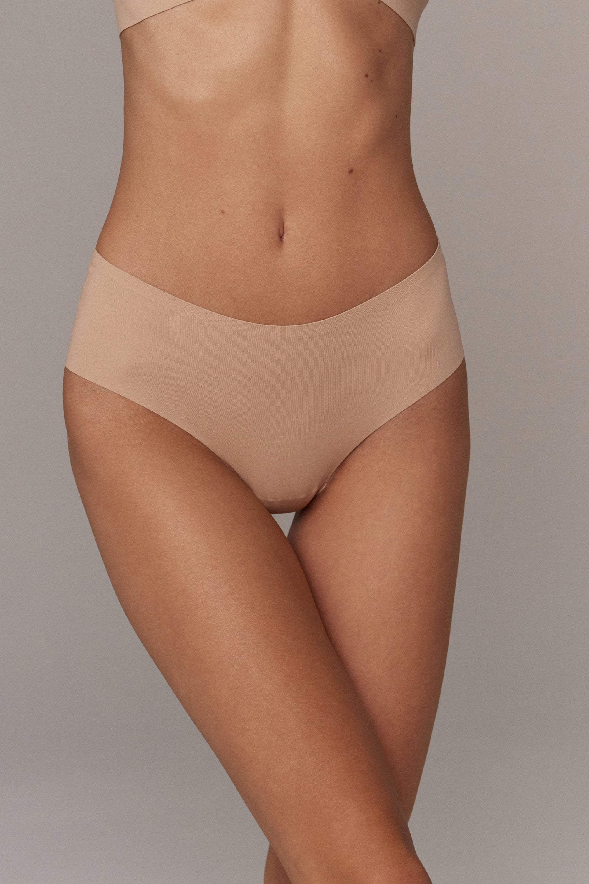 - Bezszwowe brazyliany ze średnim stanem, zapewniające efekt drugiej skóry.