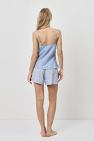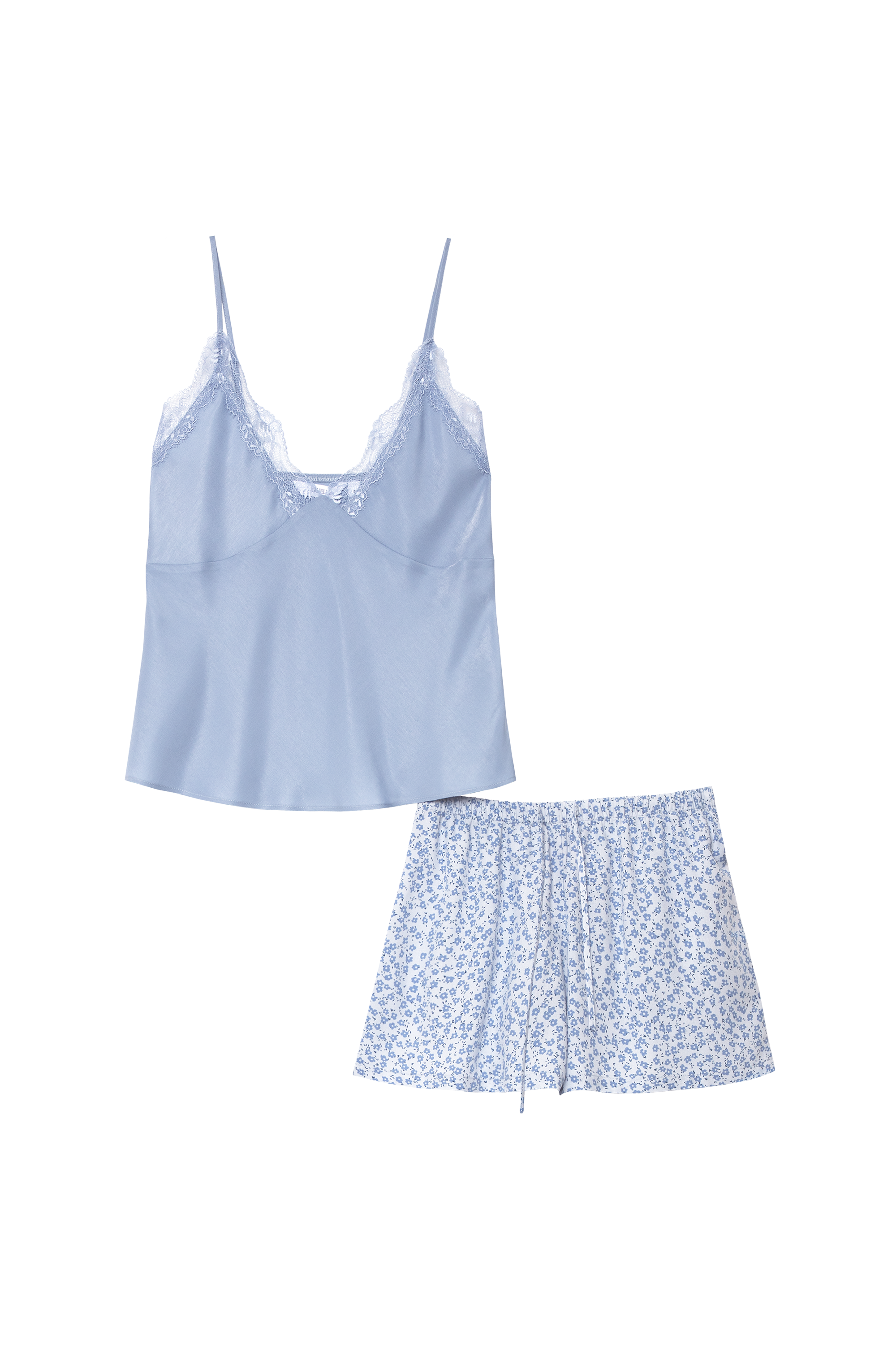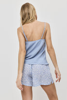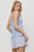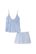 Dwuczęściowy komplet piżamowy składający się z topu typu camisole oraz dopasowanych szortów z kwiatowym printem.