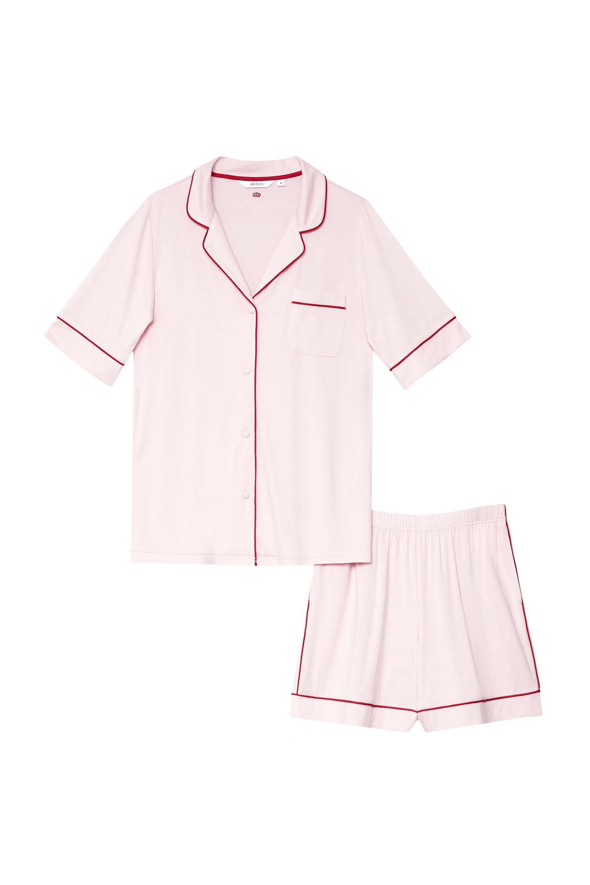 Miękki i klasyczny, ten jasnoróżowy komplet piżamowy nadaje codziennemu wypoczynkowi elegancki, dopracowany charakter.