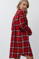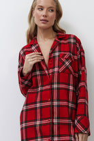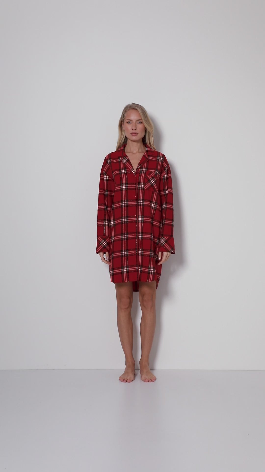 Świąteczna koszula nocna w czerwono-kraciasty wzór.