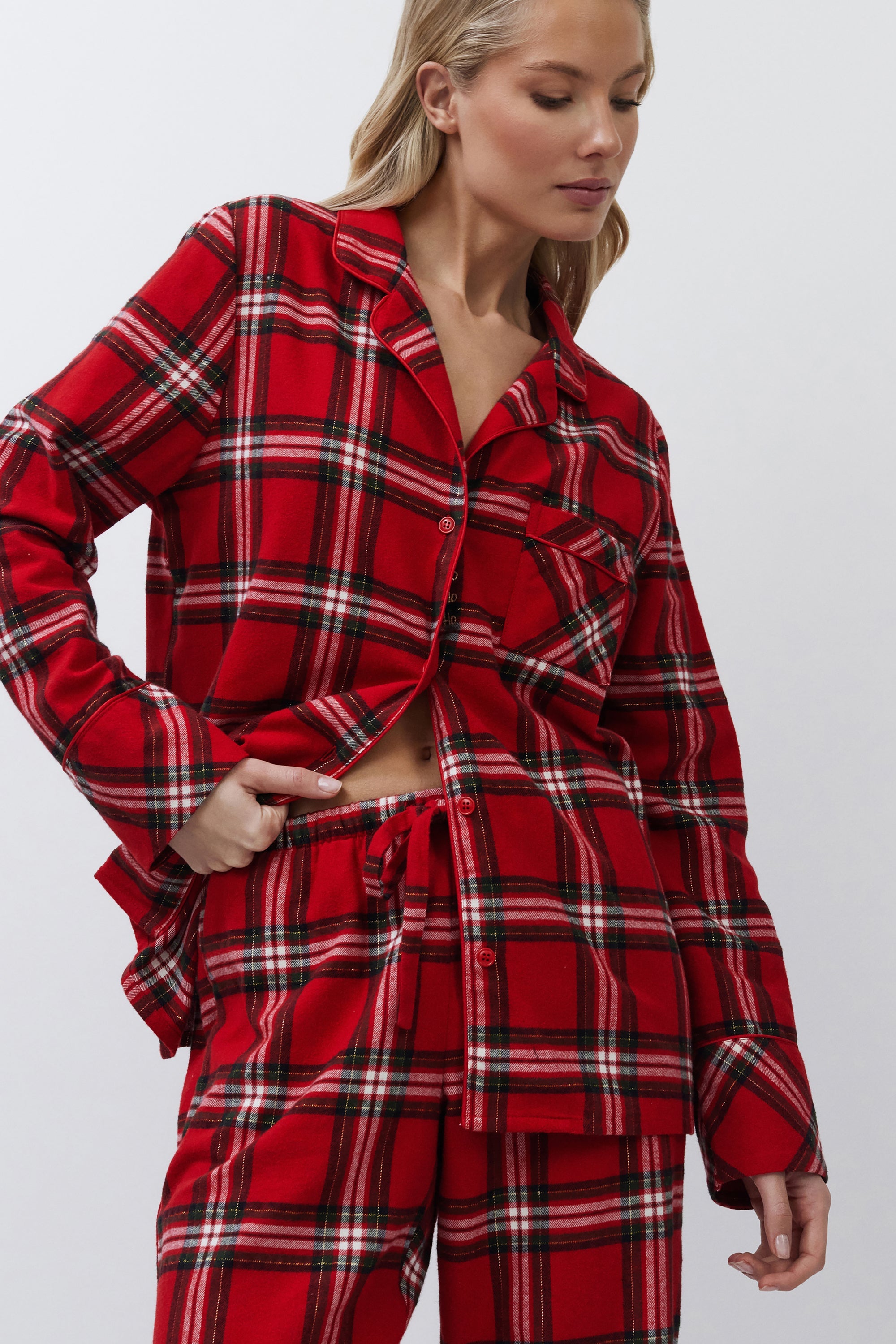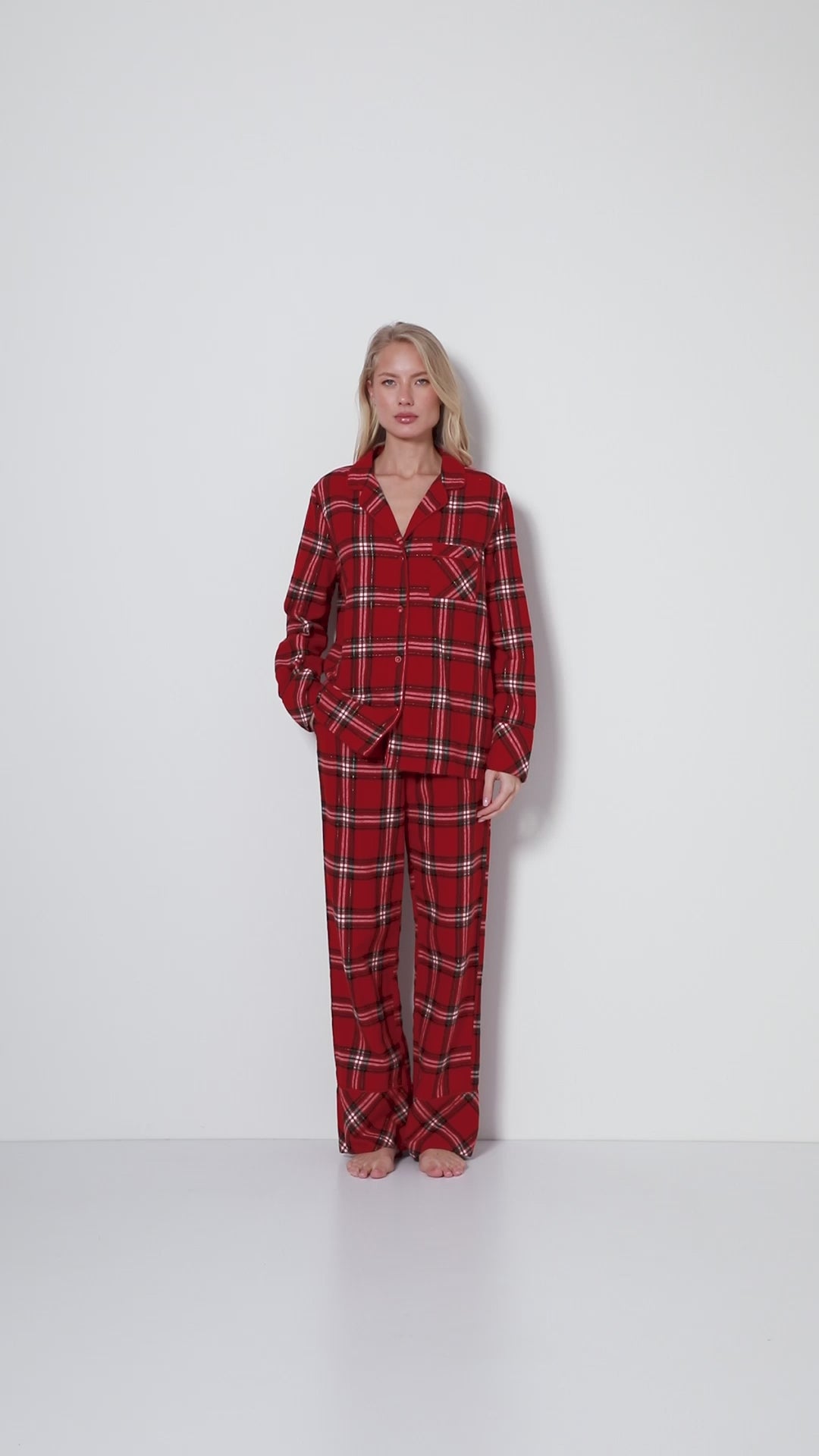 Świąteczna piżama w czerwono-kraciasty wzór.