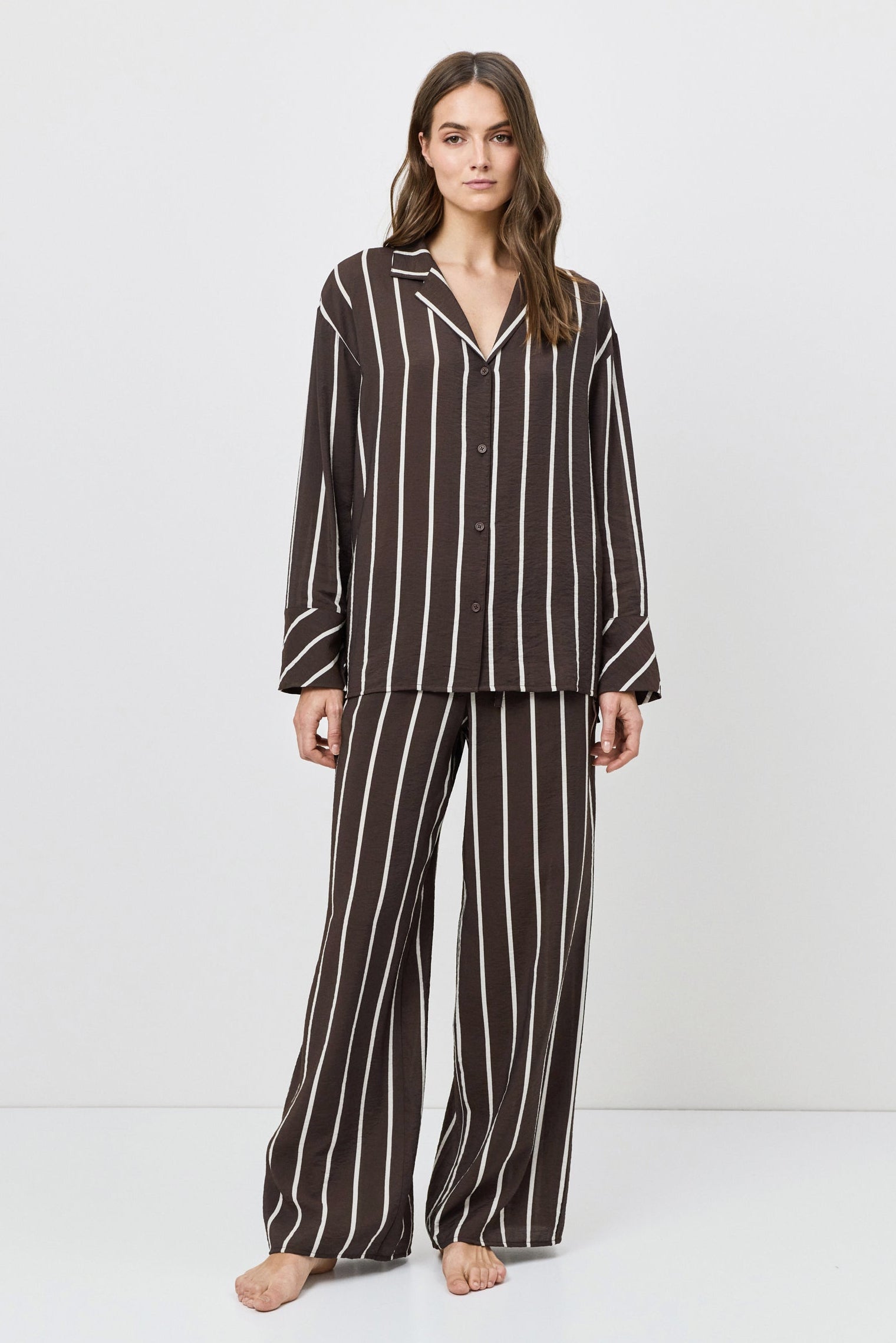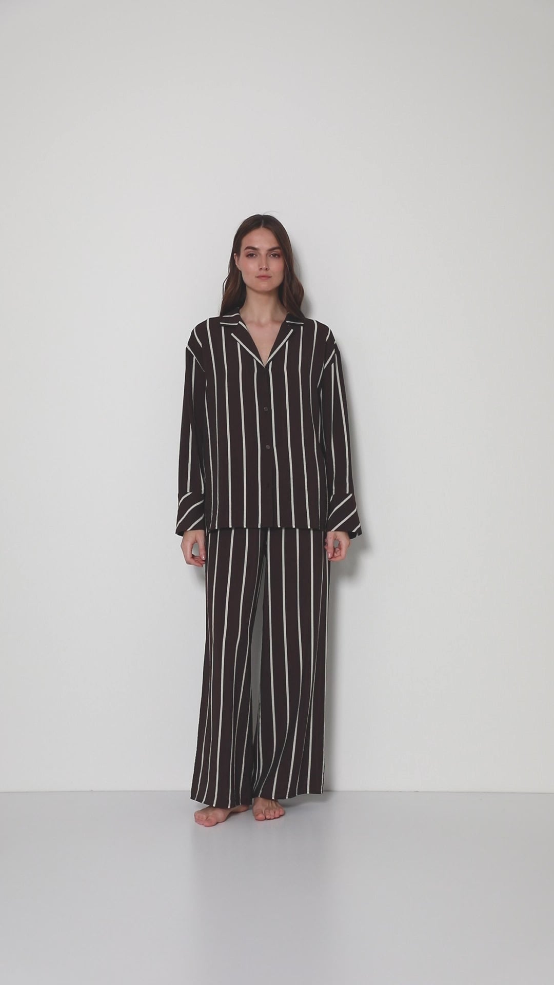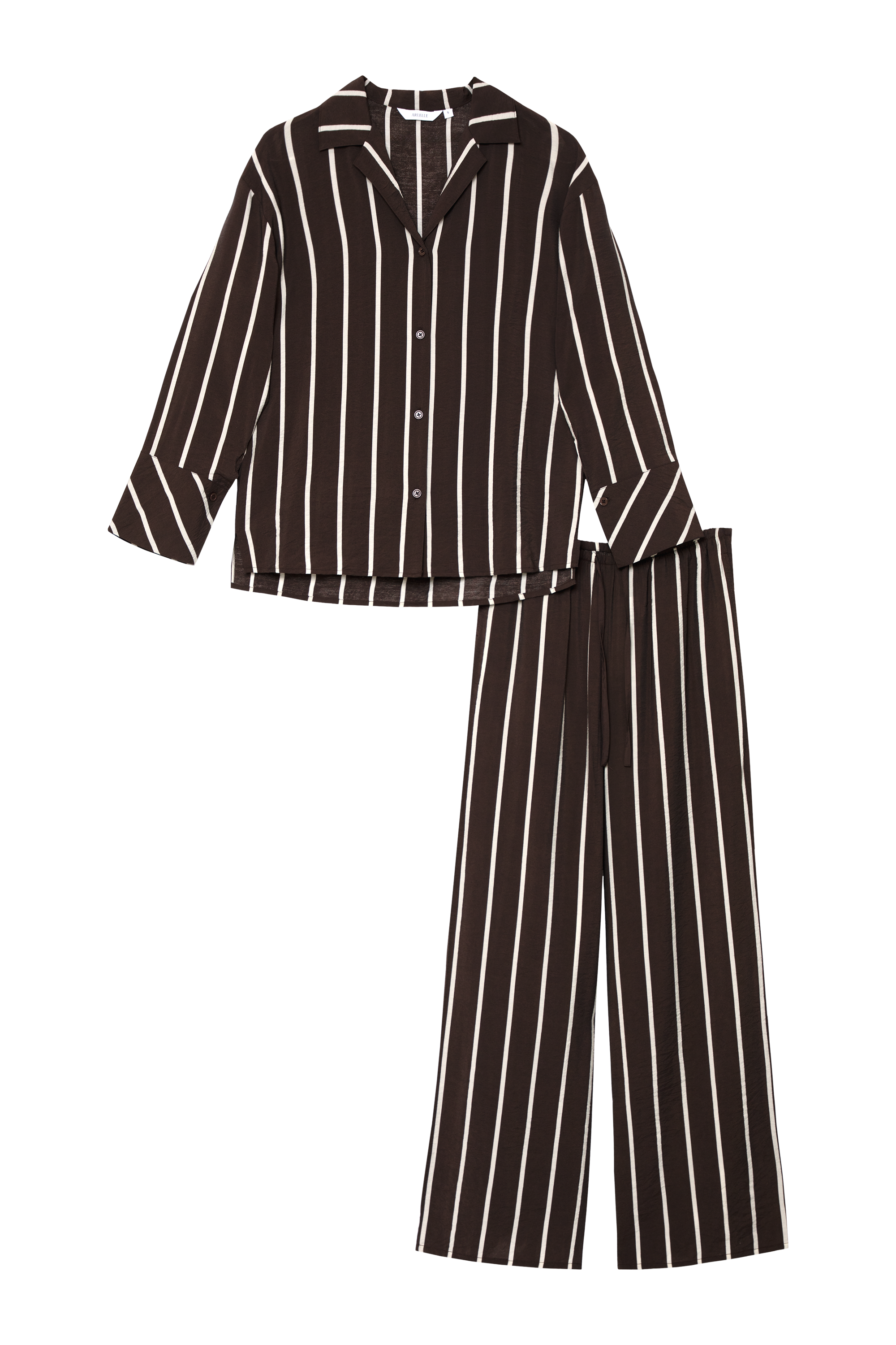 Dwuczęściowy komplet z kolekcji Resortwear składający się z koszuli z długim rękawem zapinanej na guziki oraz dopasowanych spodni o pełnej długości.