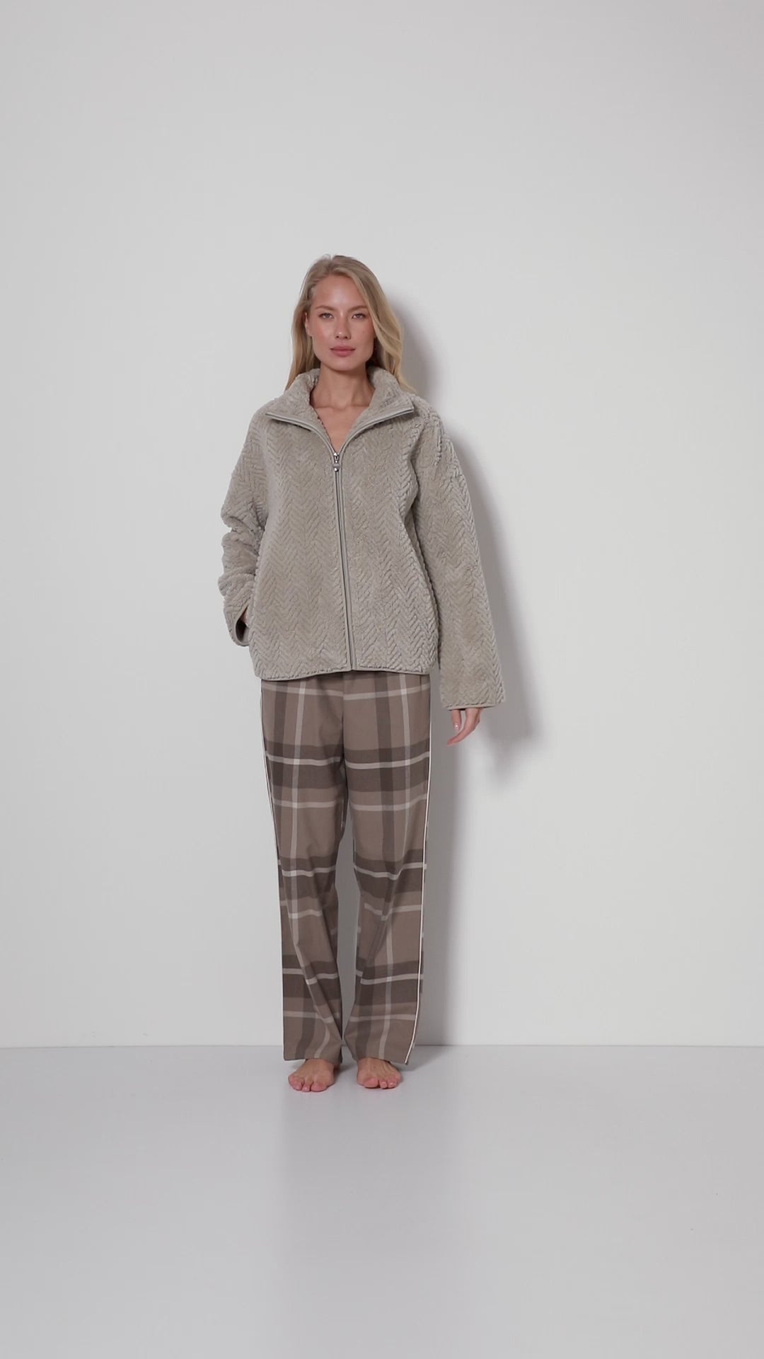 Klasyczna kurtka zapinana na zamek z puszystą teksturą w jodełkę.