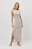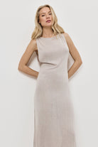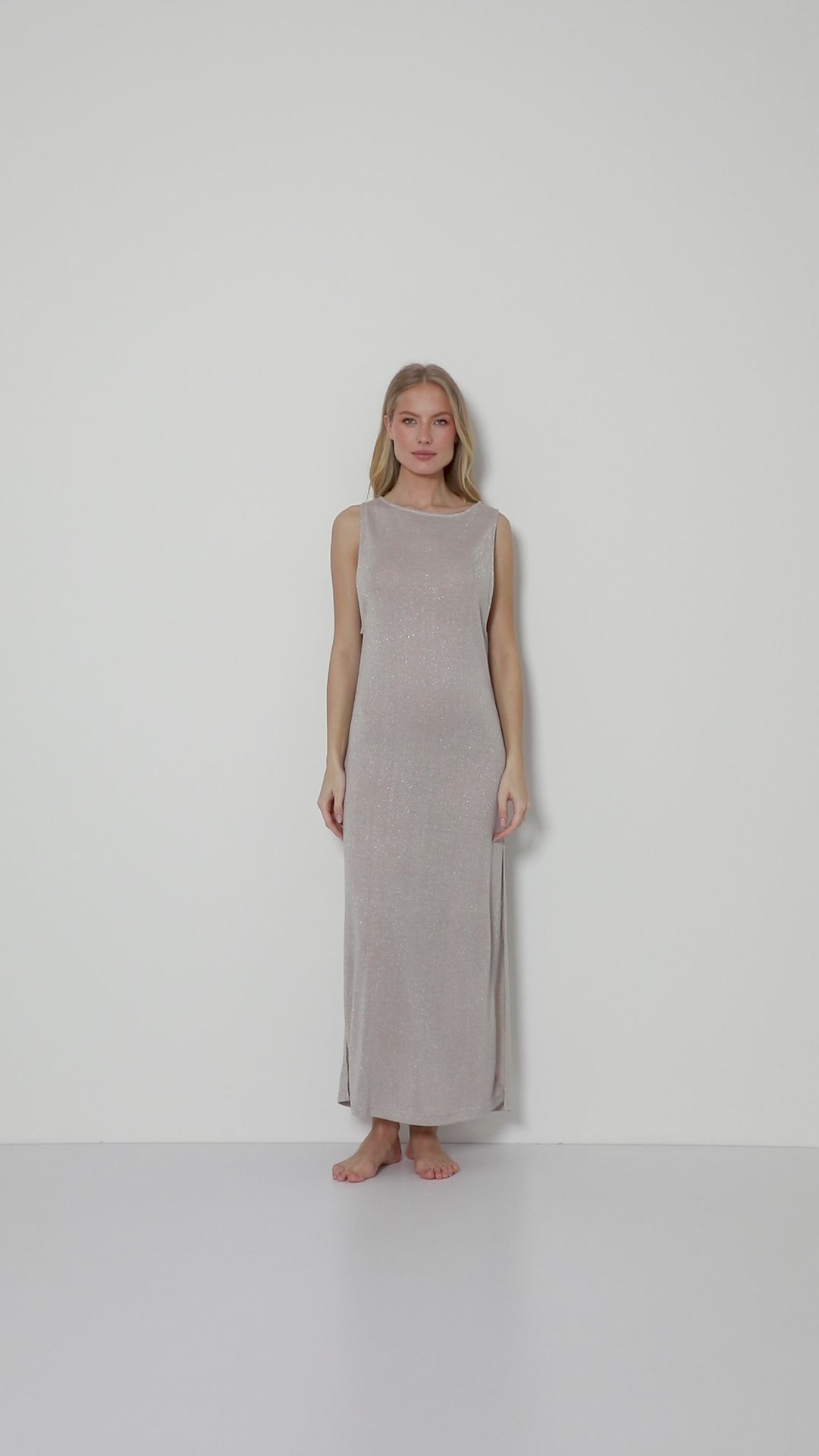 - Długość do kostek oraz subtelny metaliczny blask sprawiają, że sukienka doskonale sprawdzi się zarówno w eleganckiej, jak i bardziej swobodnej stylizacji.