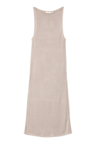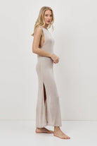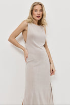 - Model bez rękawów, z czystym, okrągłym dekoltem i płynnie opływającą sylwetkę linią.