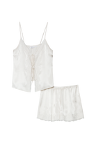 Zainspirowany stylem bridal i pełen romantycznej lekkości, ten komplet piżamowy to idealny wybór na wyjątkowe chwile i luksusowy relaks.