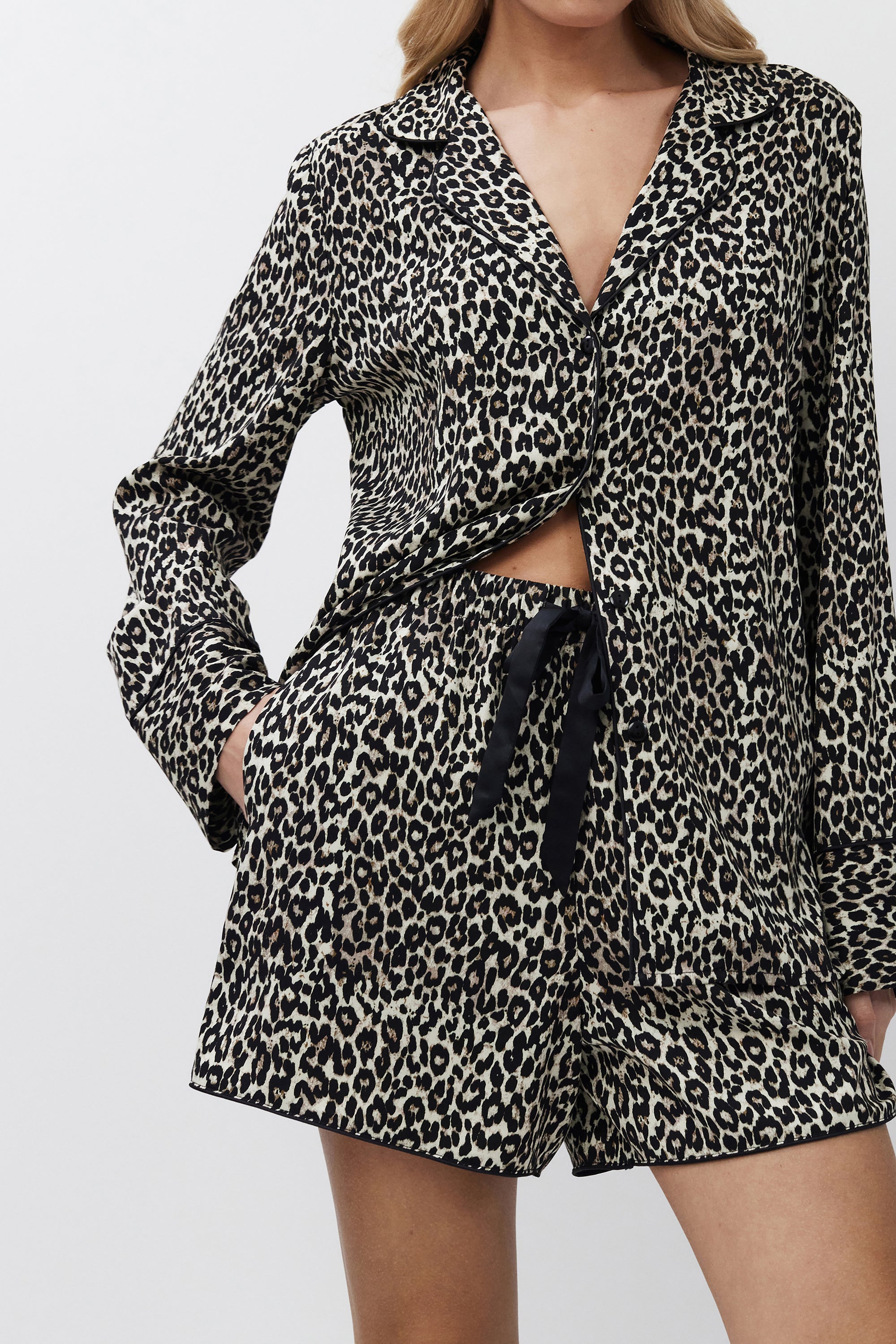 Komplet piżamowy w odważny, bezszwowy wzór w panterkę z szortami.