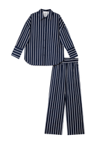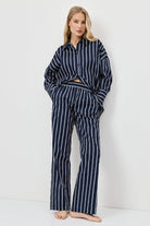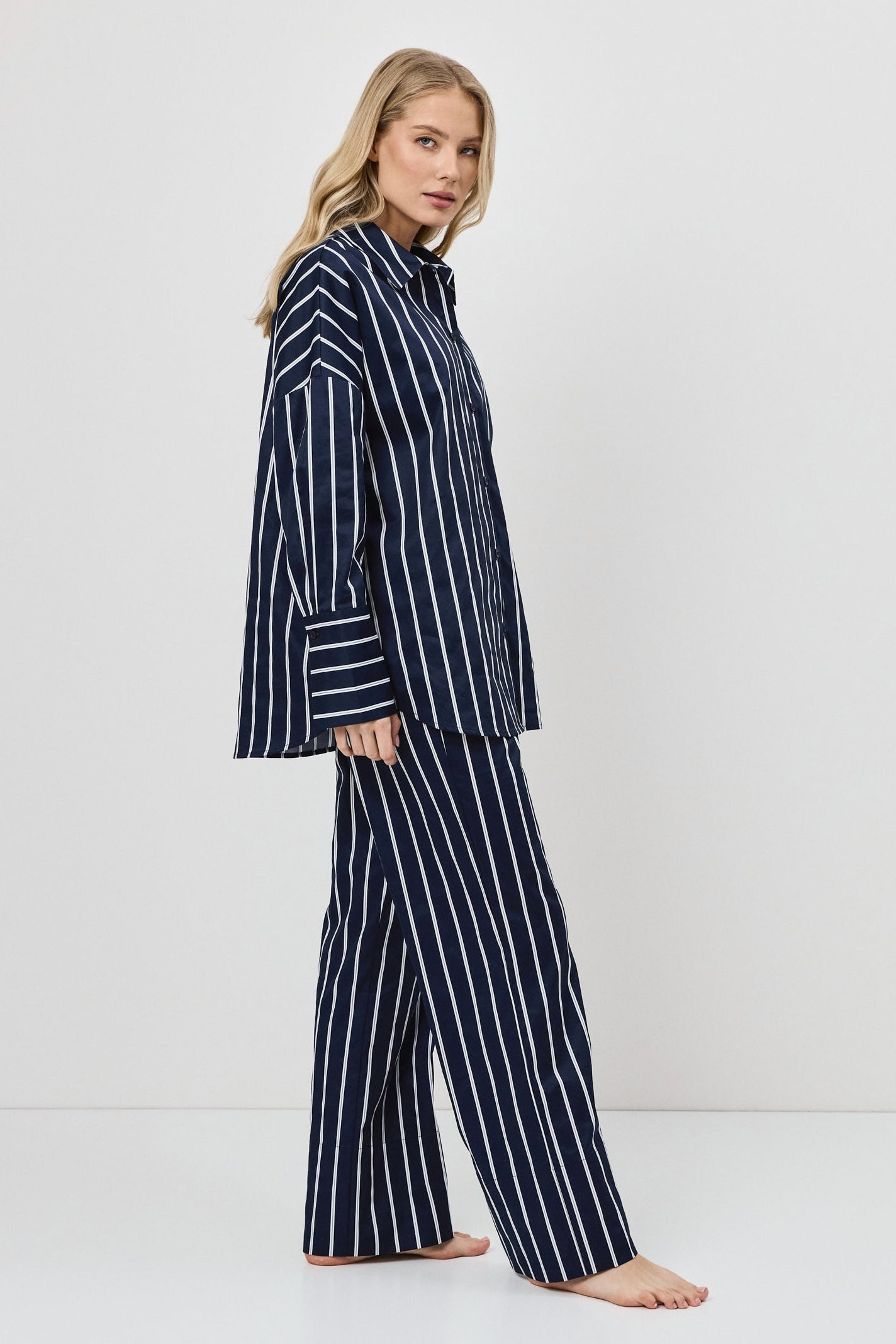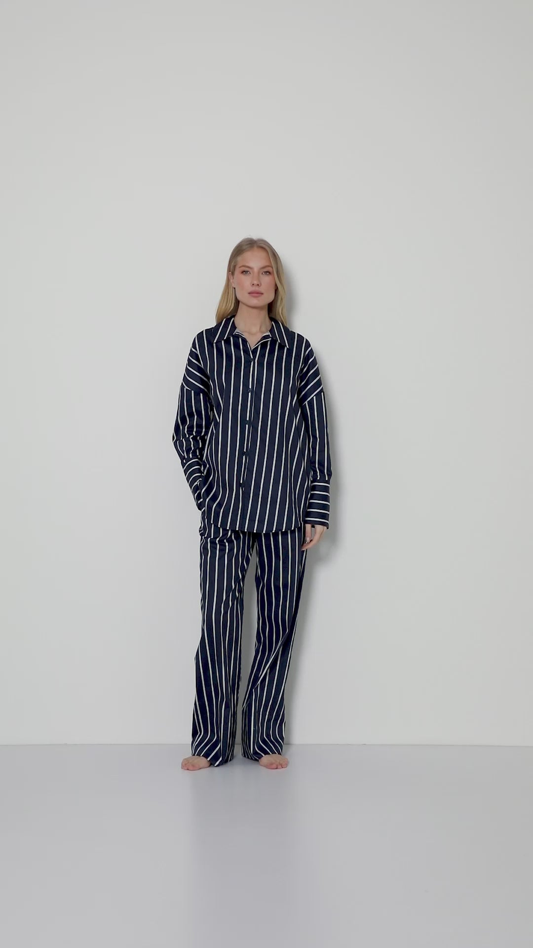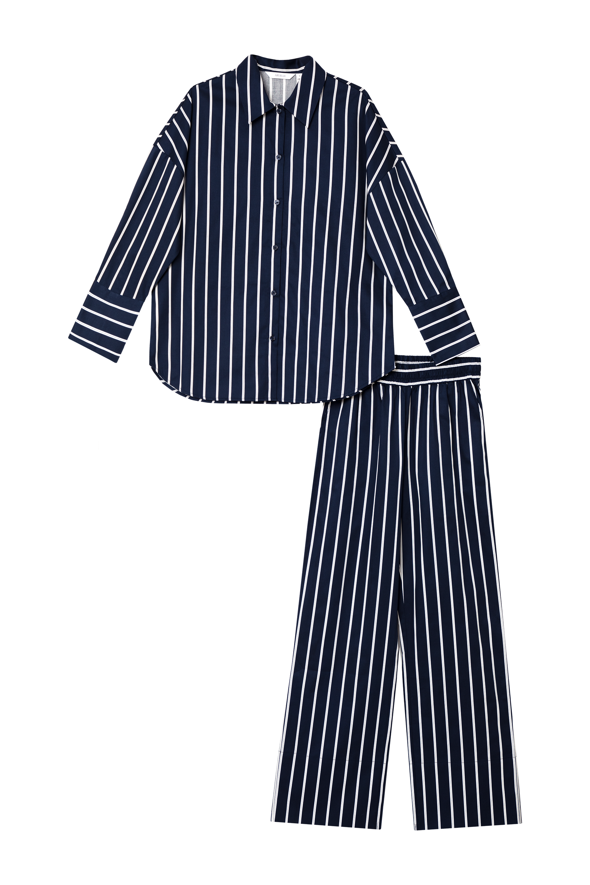 Wyrazisty i dopracowany, ten granatowy komplet Resortwear łączy wyraziste krawiectwo z niewymuszonym komfortem.