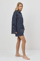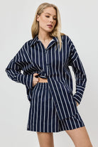 Wyrazisty, a jednocześnie swobodny, ten granatowy komplet Resortwear nadaje letniej stylizacji dopracowanego charakteru.