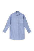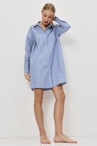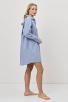 - Model ma swobodną sylwetkę z długimi rękawami i klasycznym kołnierzem koszulowym.