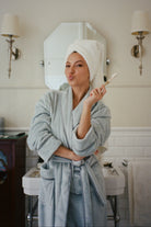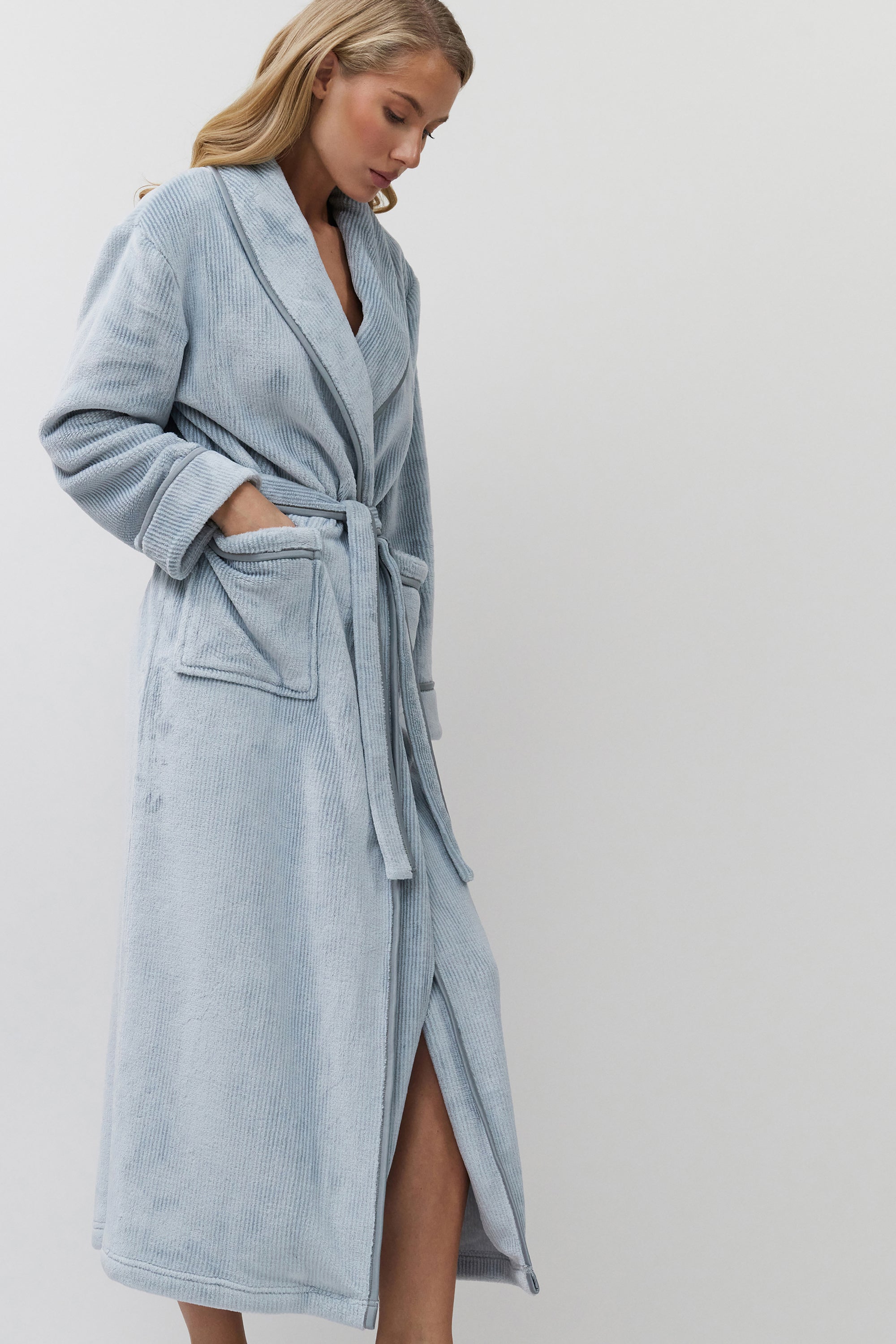Długi szlafrok z miękką, prążkowaną fakturą.
