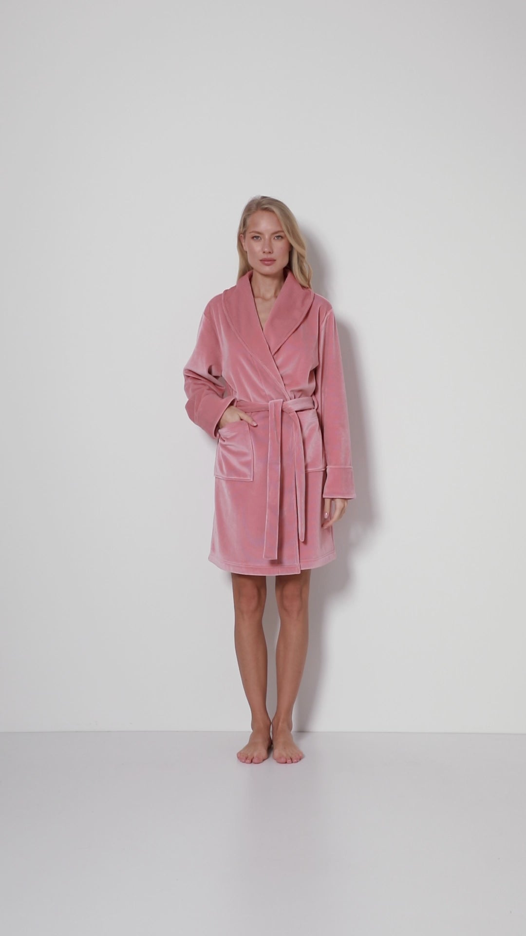 Krótki szlafrok o luksusowej, prążkowanej fakturze.