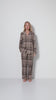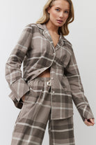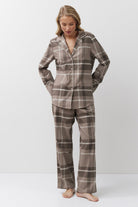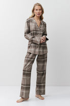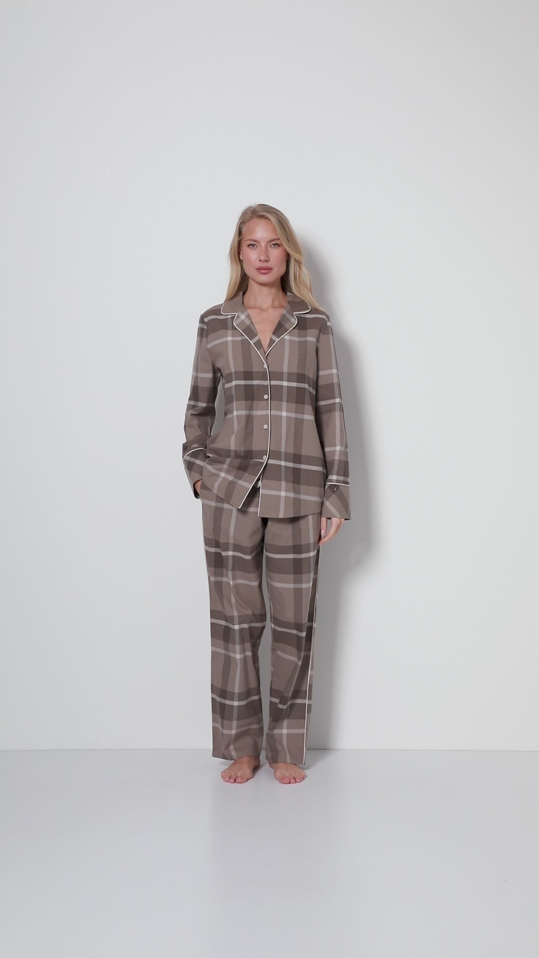 Klasyczny komplet piżamowy w kratę w kolorze taupe ze spodniami.