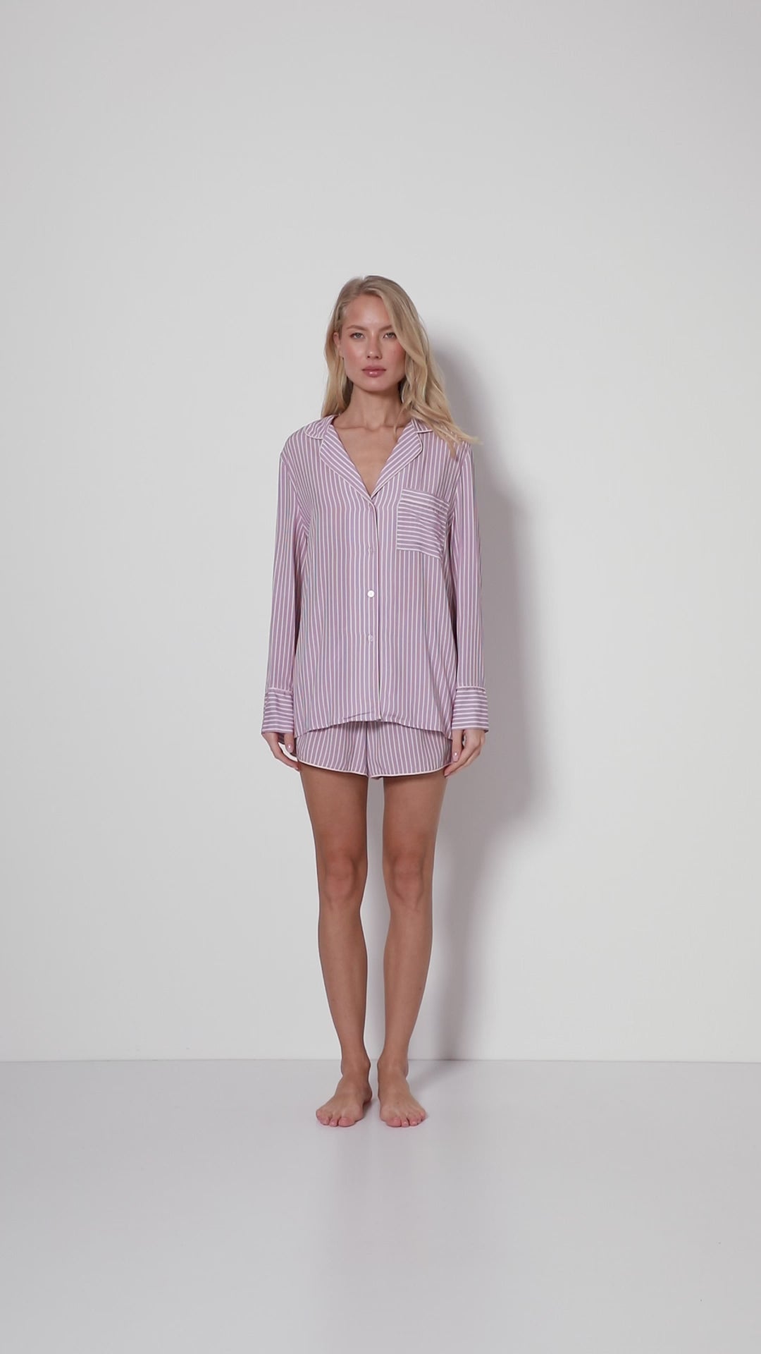 - Lamówka podkreśla kołnierzyk, kieszeń, mankiety oraz dół szortów.